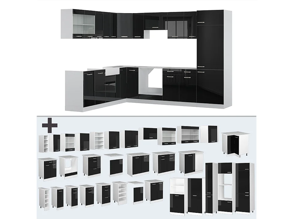 Cuisine en angle noir brillant/blanc 287x46x81.6 r-line