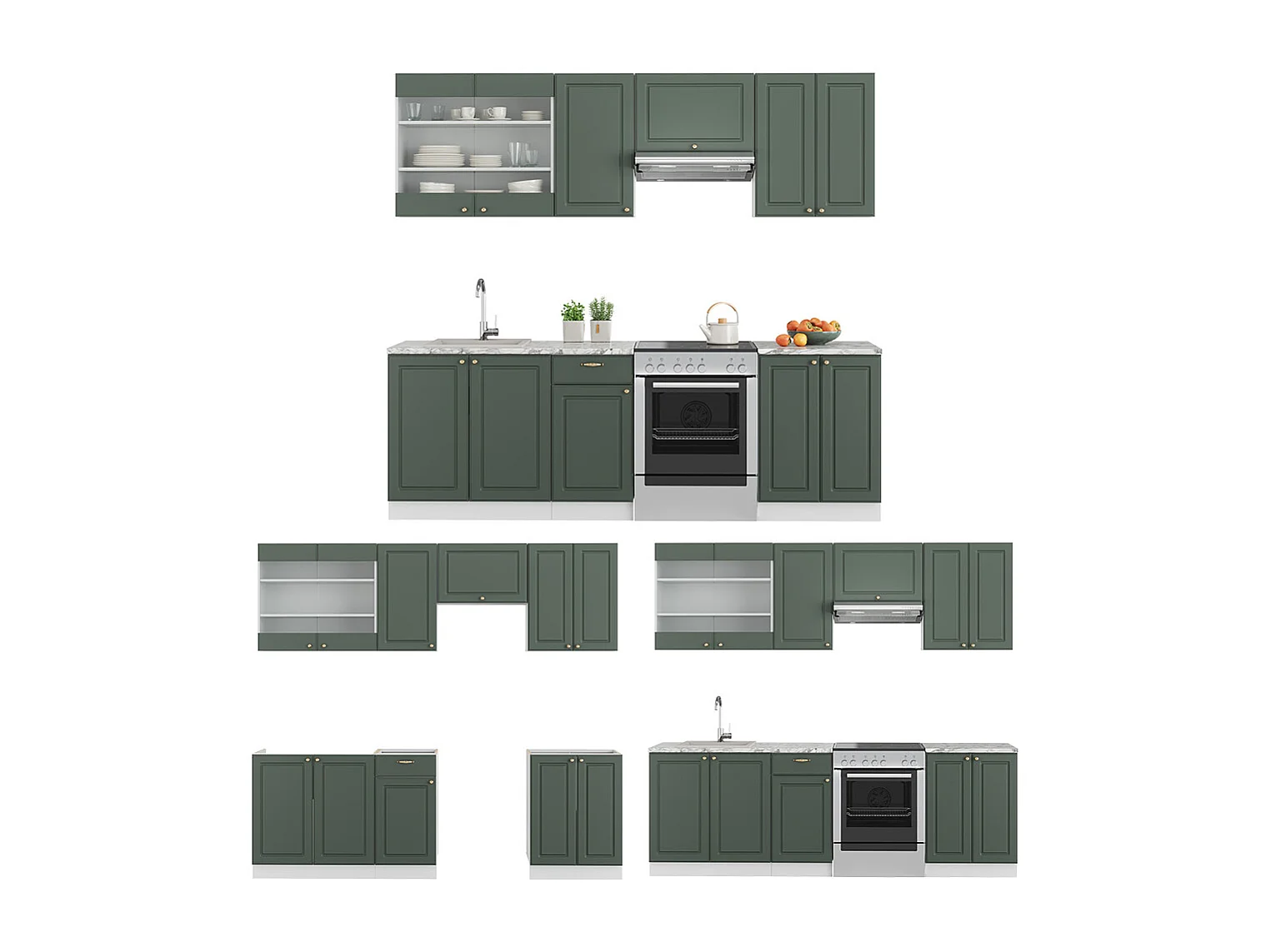Cuisine vert-or landhaus/blanc 240x60x81.6 fame-line