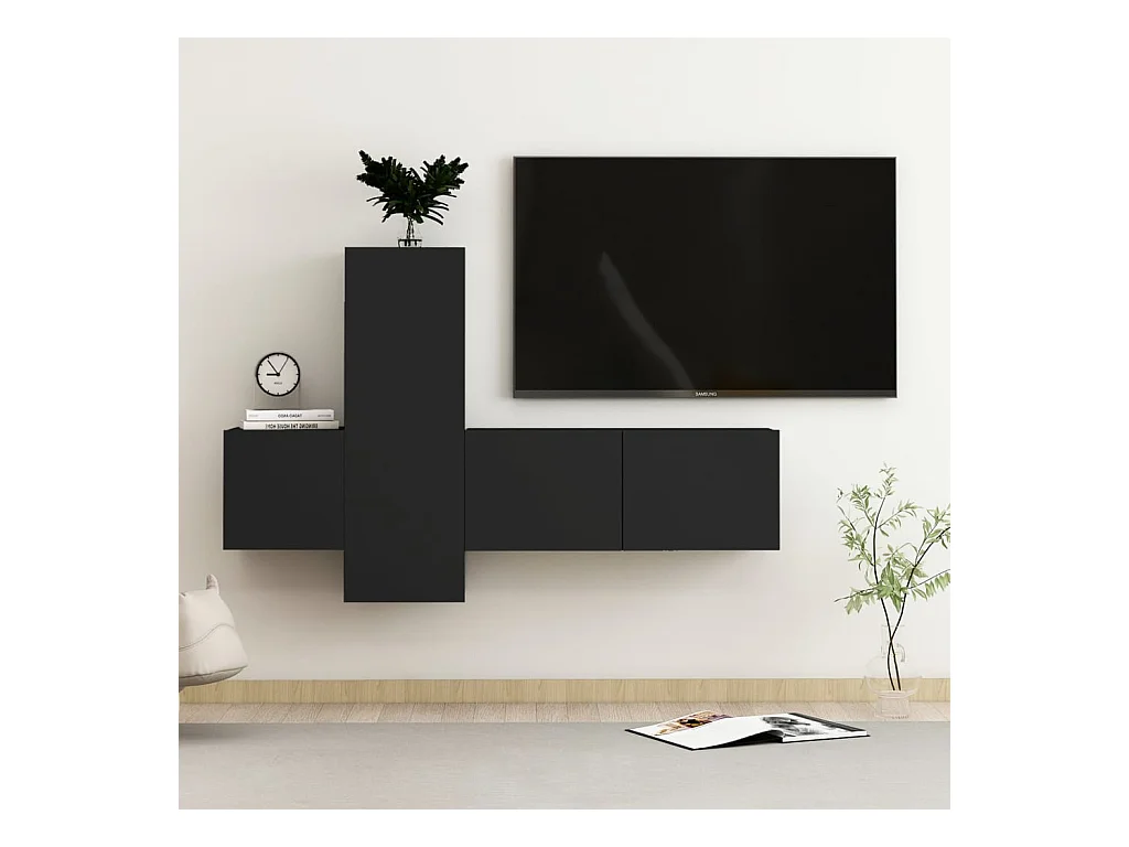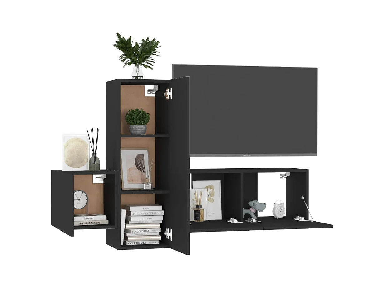 Daingean Ensemble de meubles TV 3 pcs Noir Bois d'ingénierie