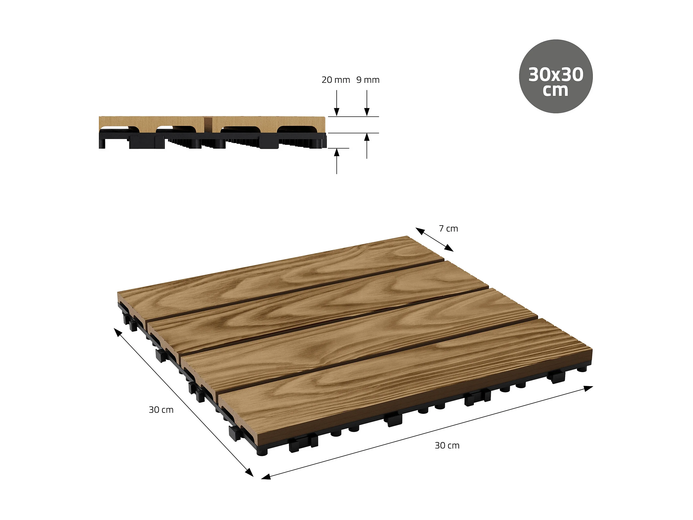 Dalles de terrasse WPC 30x30cm 44 pièces 4m² teck aspect bois avec système clipsable et drainage antidérapant intérieur extérieur revêtement de sol