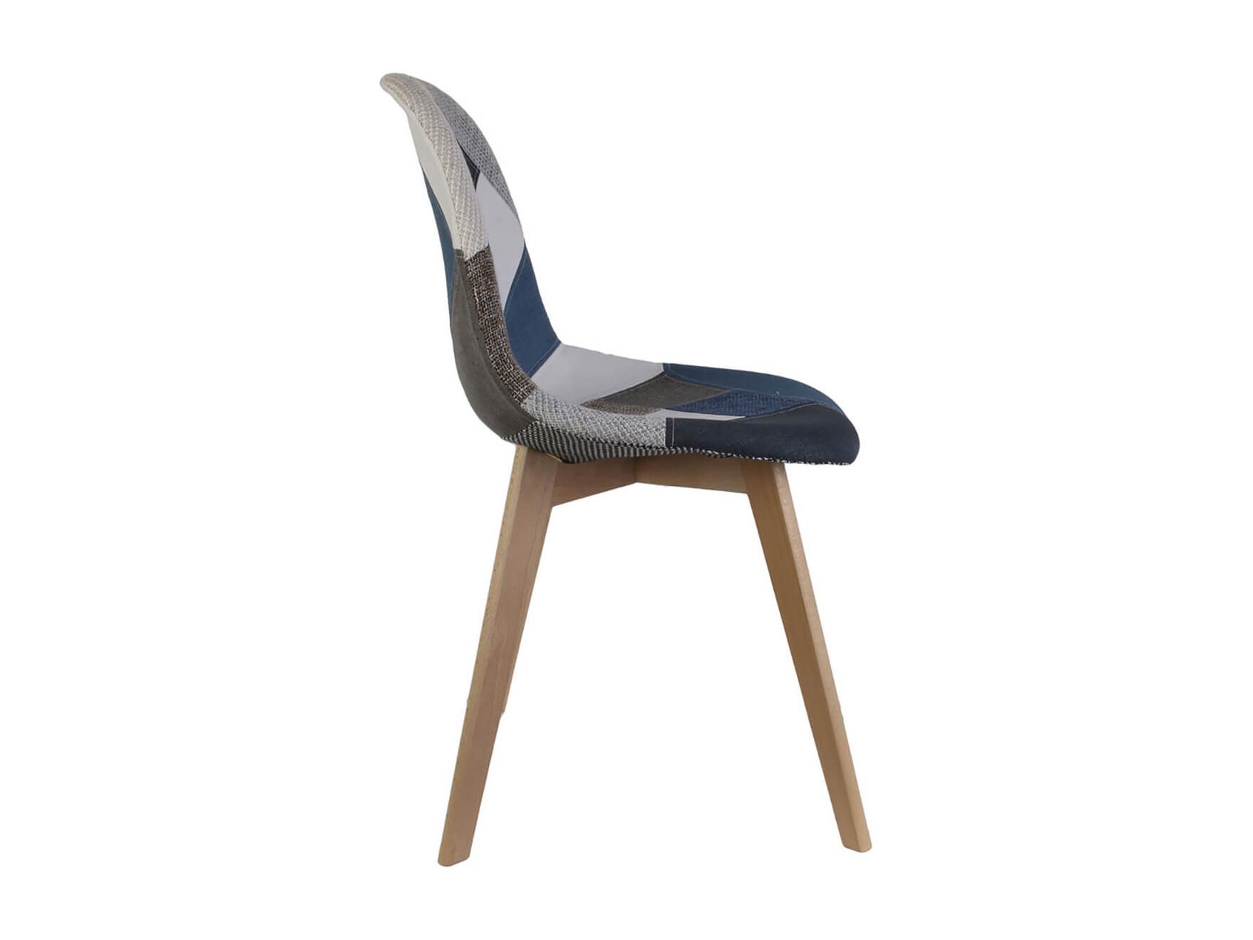DAMAS - Lot de 4 Chaises Patchwork Bleu et Gris