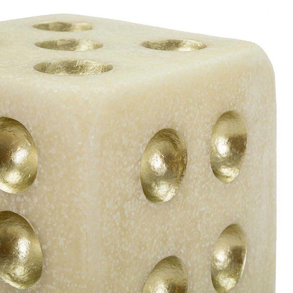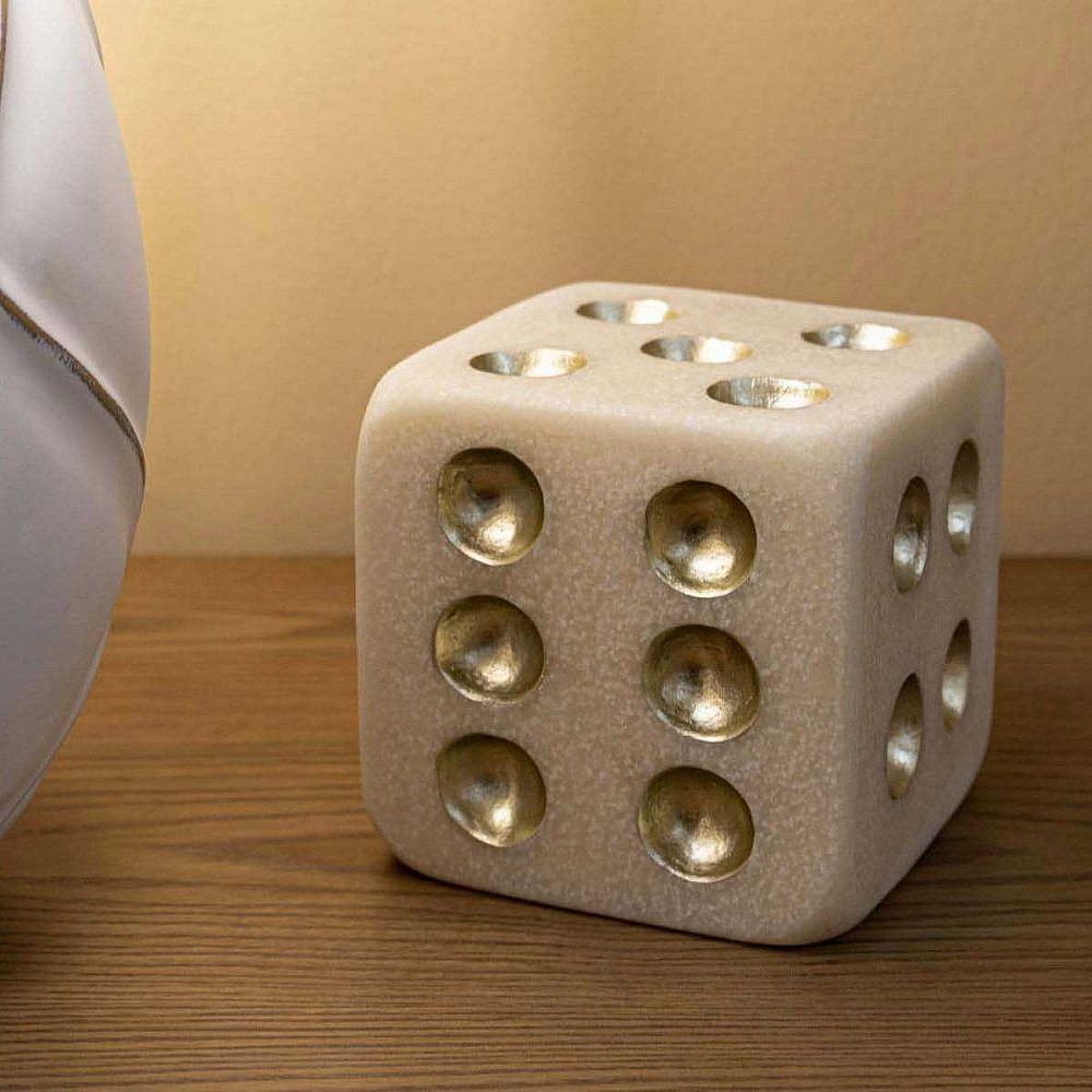 Dé Déco en Résine "Quarzy" 12cm Blanc & Or