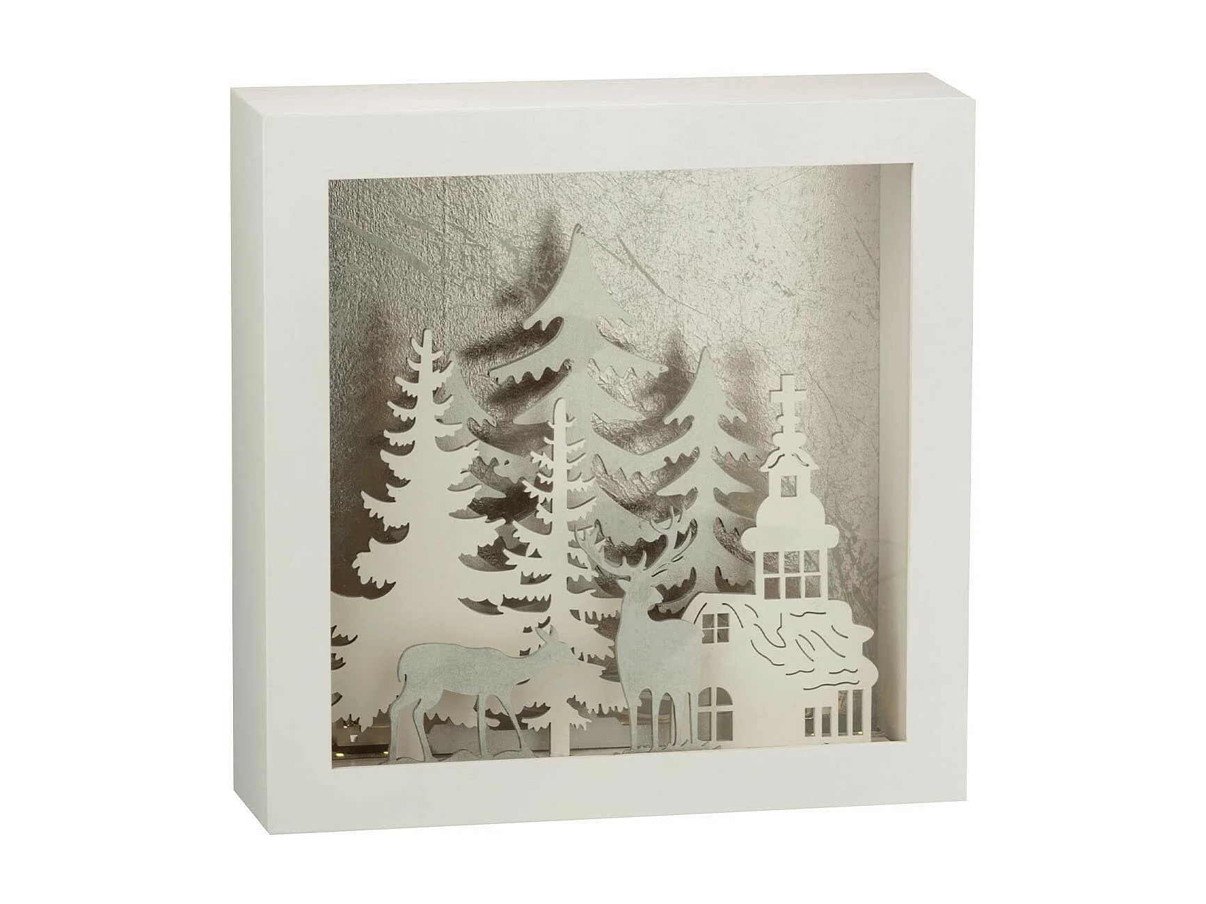 Décoration de Noël Led "Hiver" 24cm Blanc & Argent