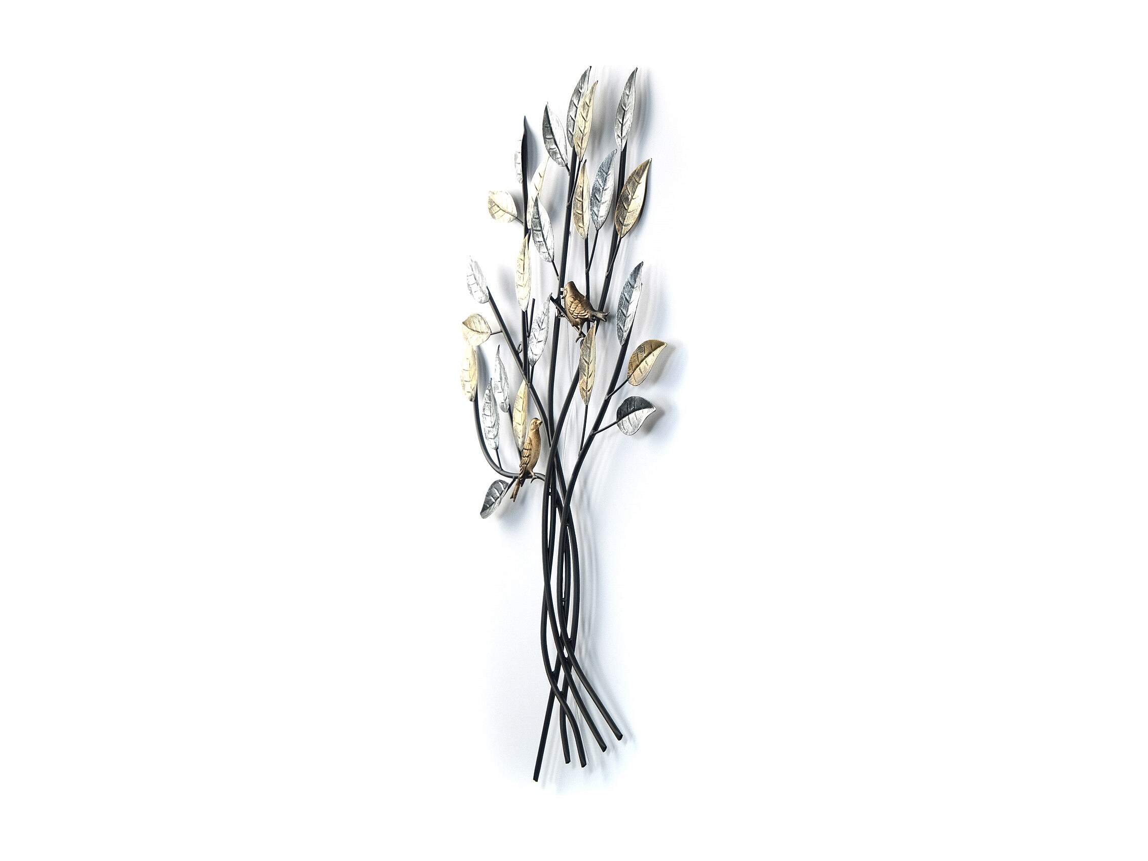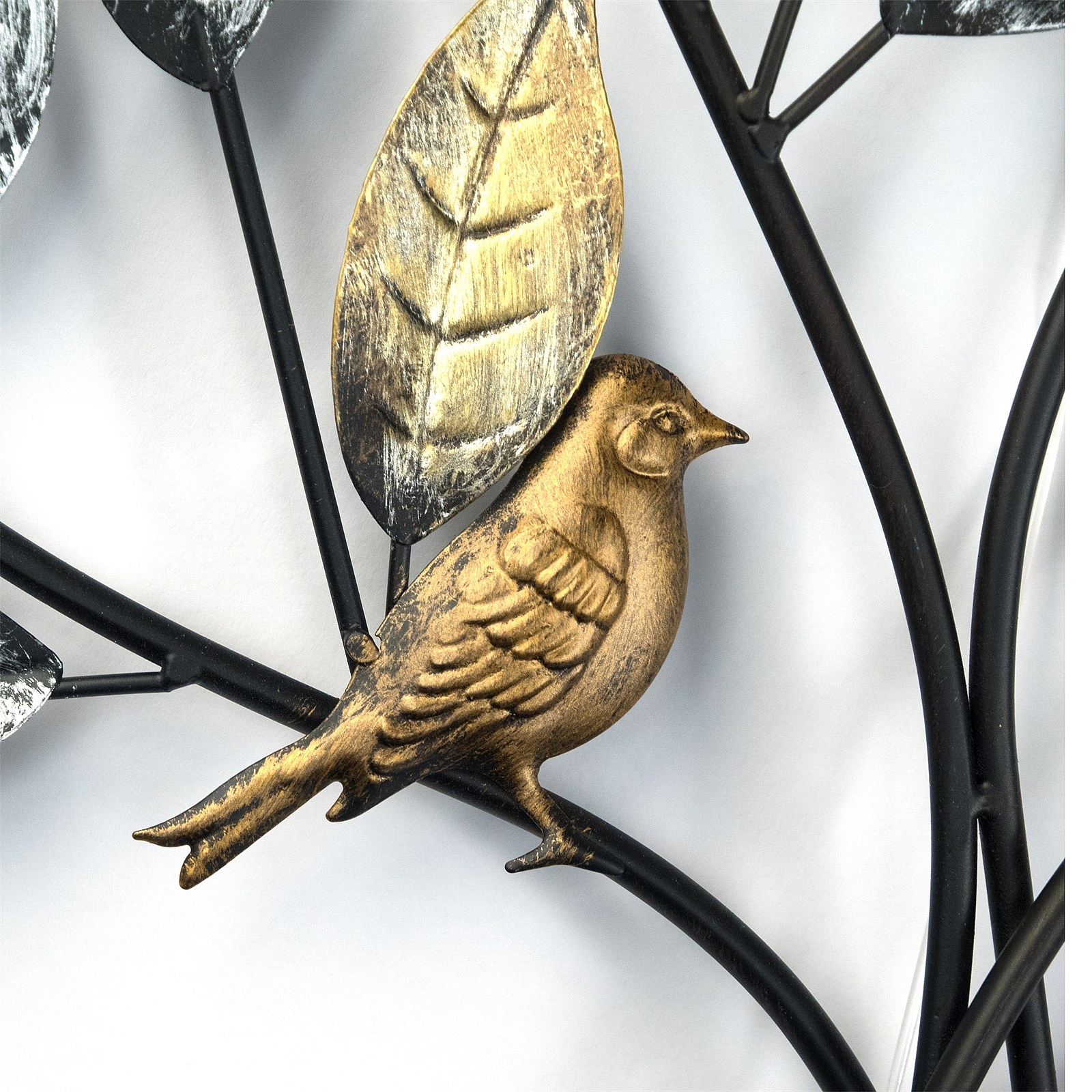 DÉCORATION MURALE Arbre avec des oiseaux 76x50 cm, métal argent-or