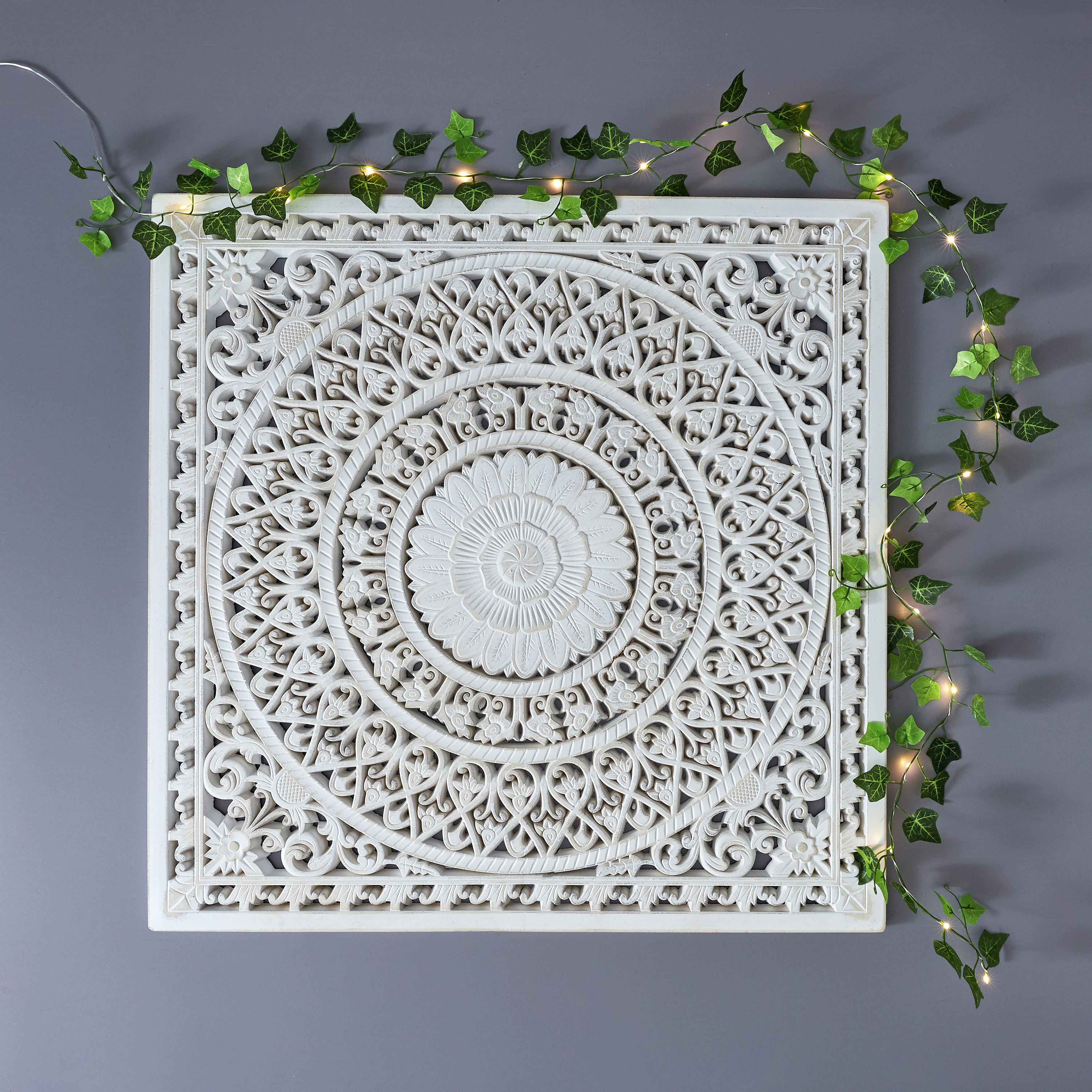 Décoration murale sculptée blanchie