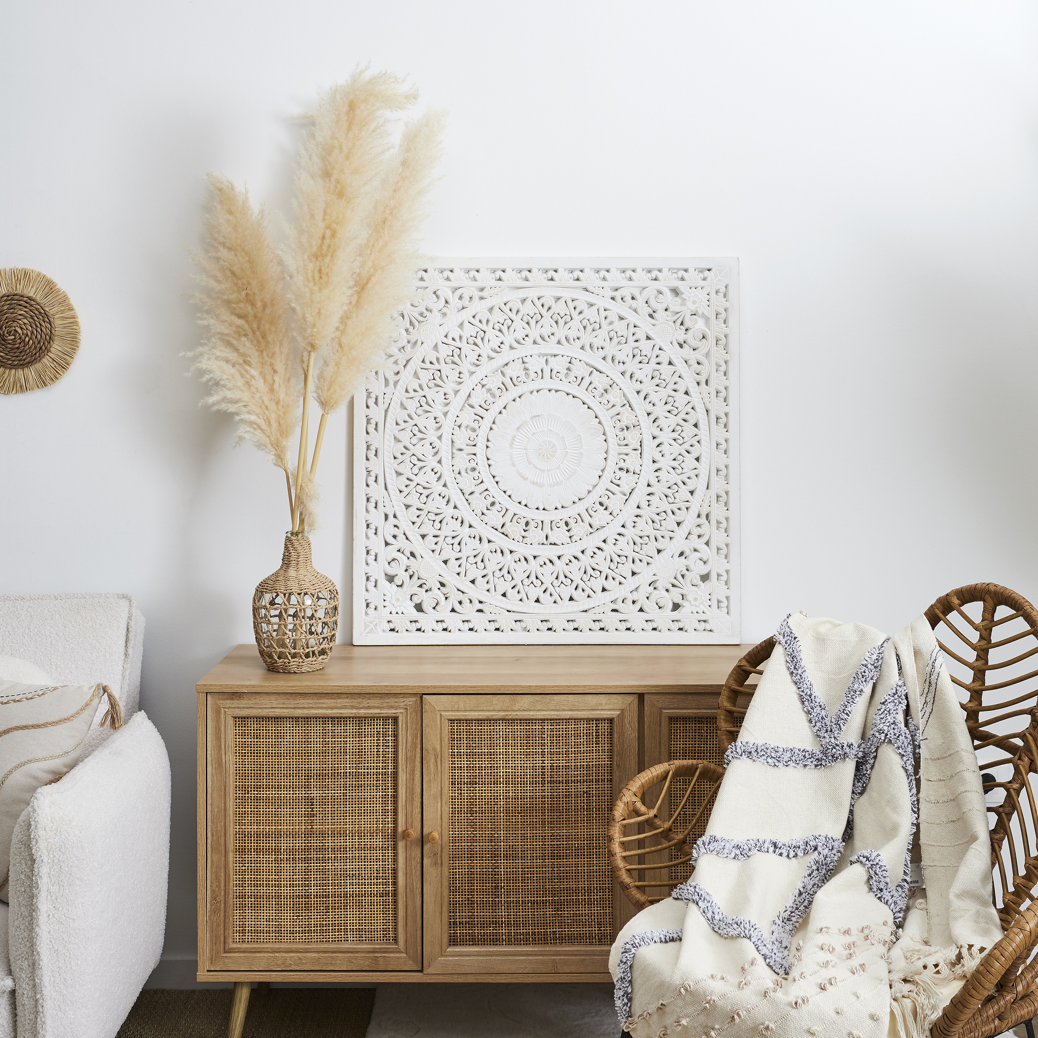 Décoration murale sculptée medium blanchi