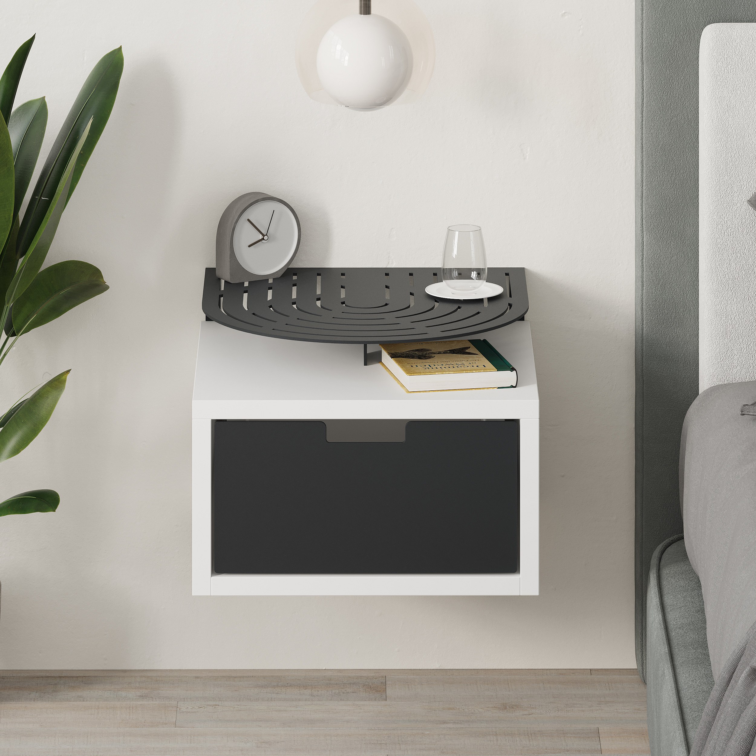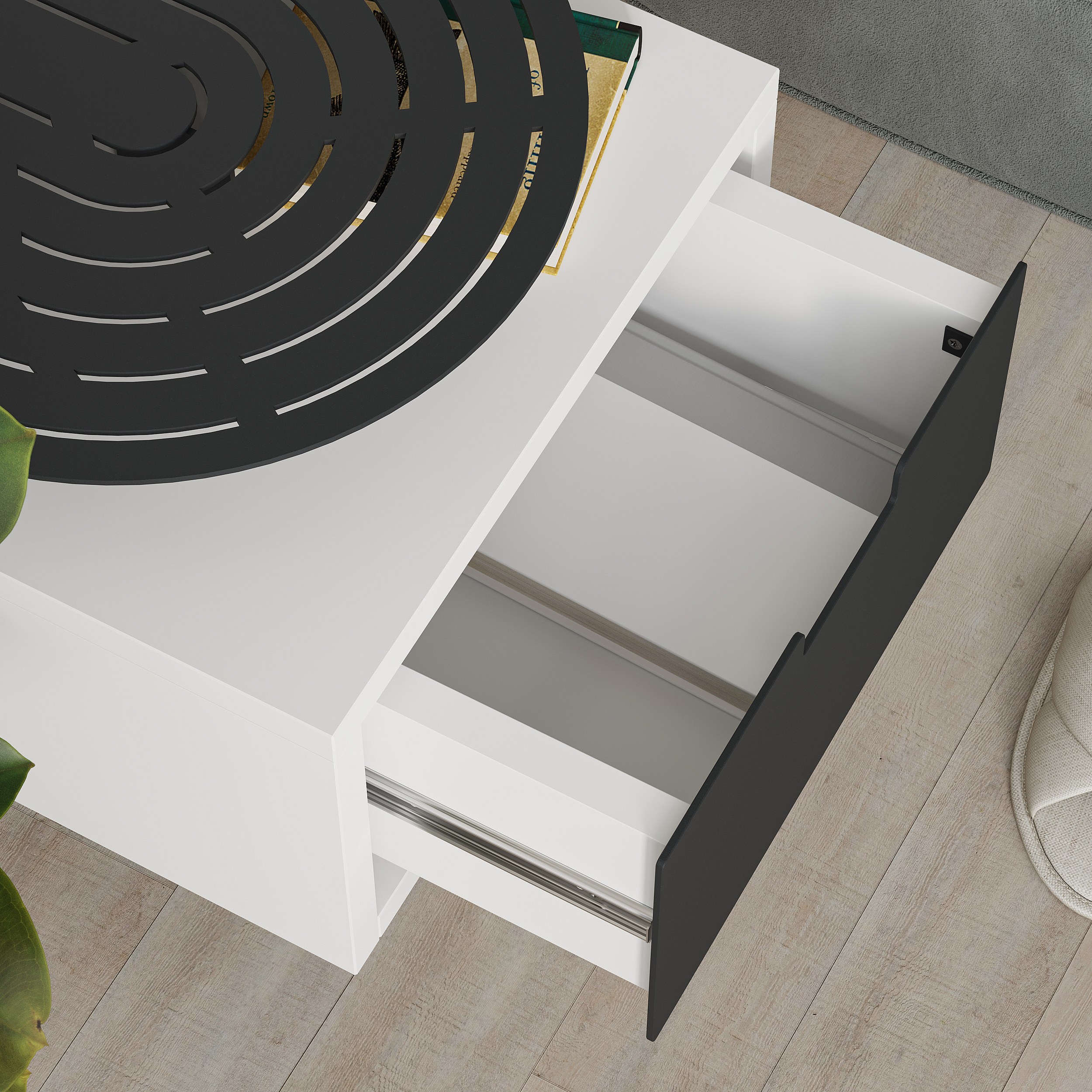 Decortie Modern Oslo White Nightstand with Drawer Engineered Wood with Metal Shelf Bedside Table