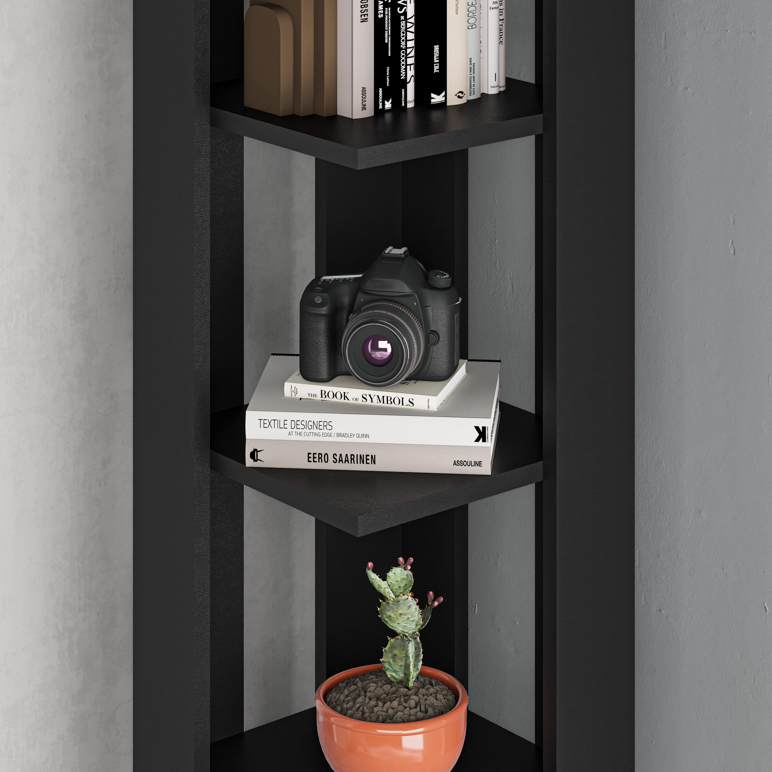 Decortie Nati Tall Corner Bookcase Modern Shelving Unit Space-Saving Storage Black Bute 161cm