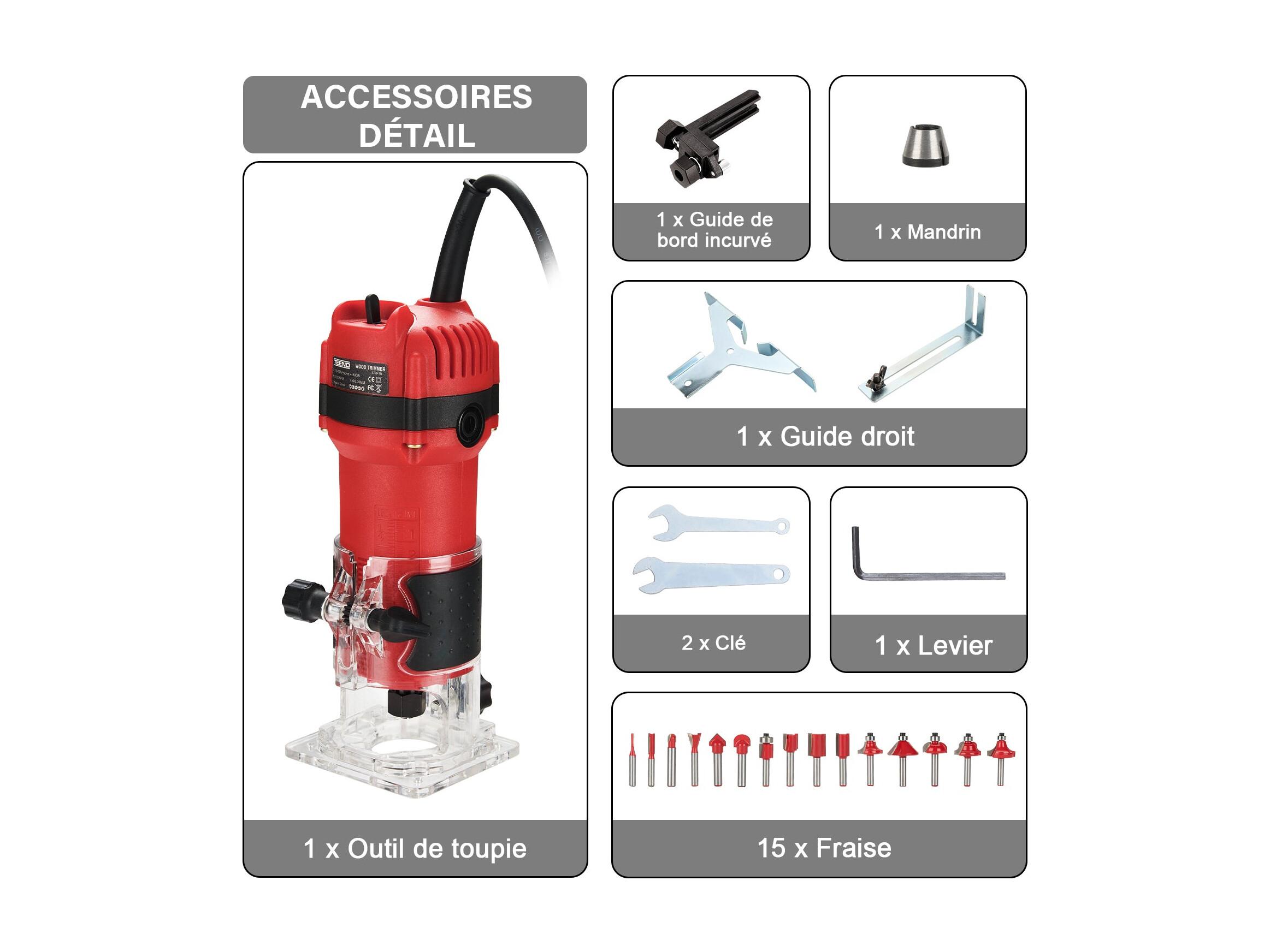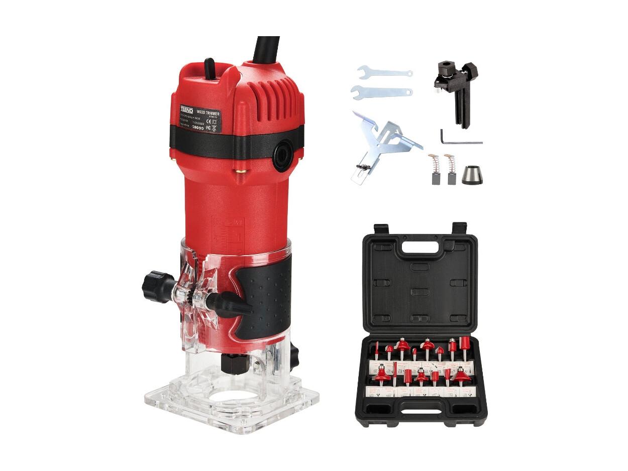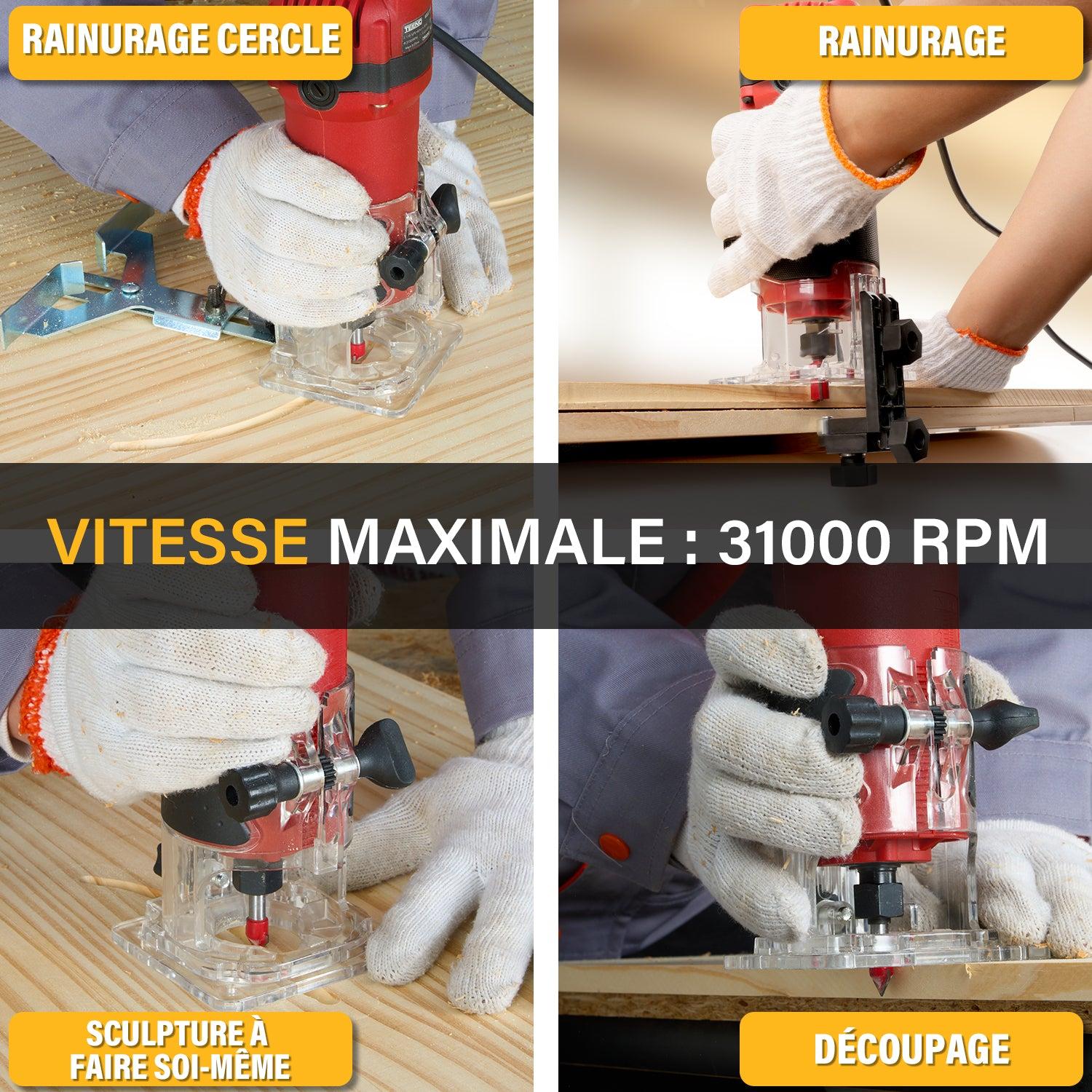 Défonceuse Affleureuse Électrique 800W 31000 RPM, Affleureuse à Bois Avec 15 Fraises à Défoncer Queue de 1/4", Base Fixe Mèches 6/6.35 mm