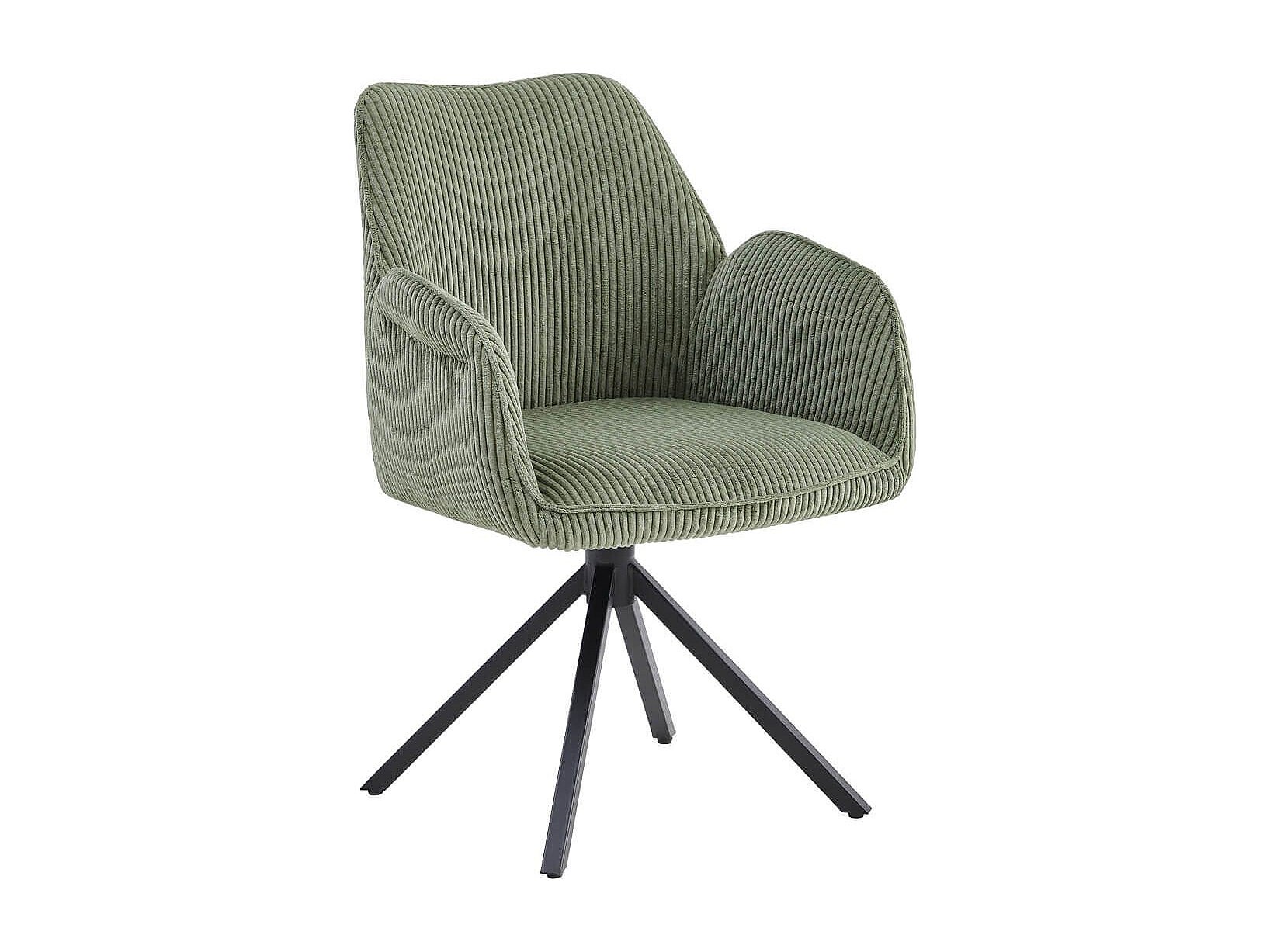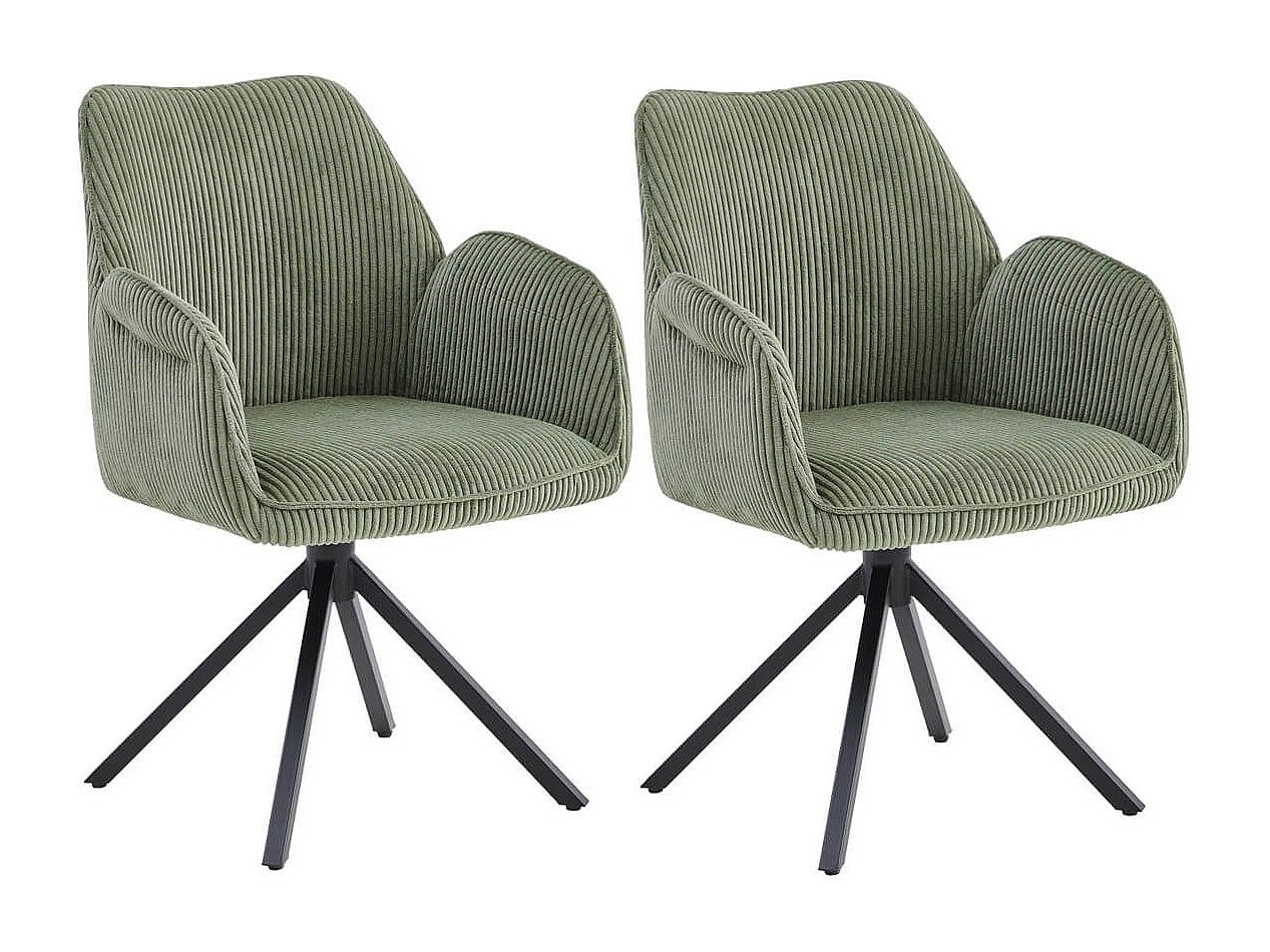 DELIA - Lot de 2 Fauteuils de table Pivotants Tissu Velours Côtelé Vert
