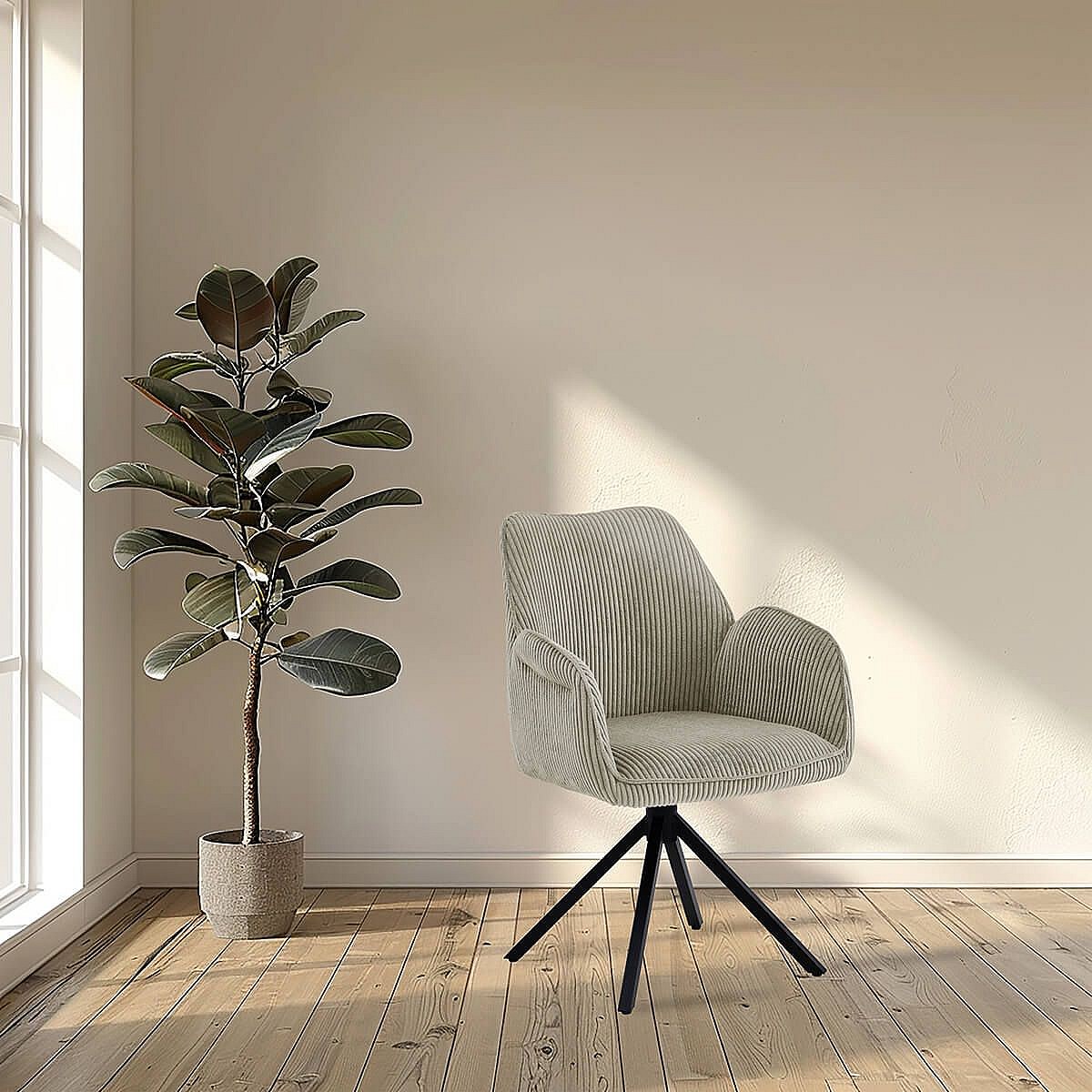 DELIA - Lot de 4 Fauteuils de table Pivotants Tissu Velours Côtelé Beige