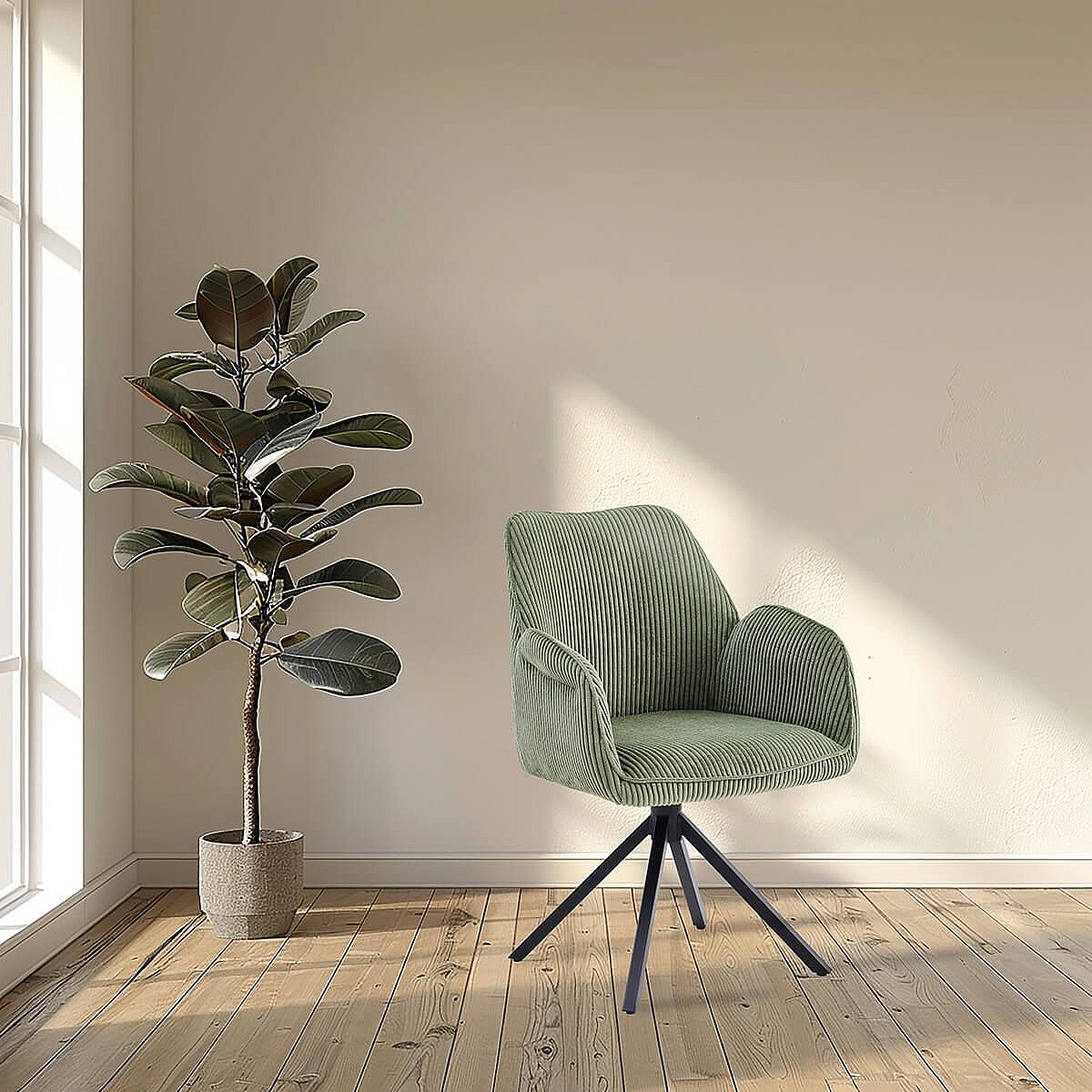 DELIA - Lot de 4 Fauteuils de table Pivotants Tissu Velours Côtelé Vert