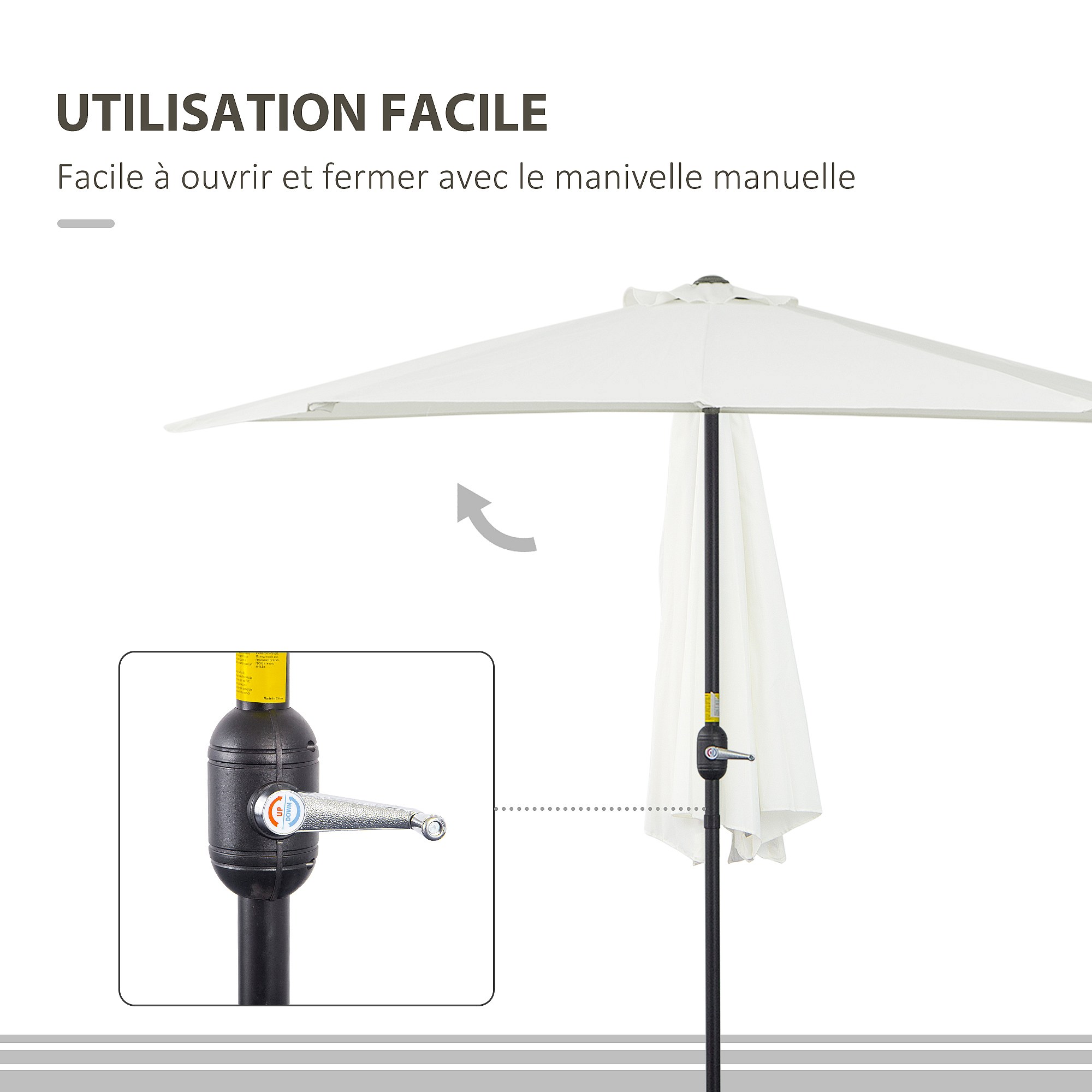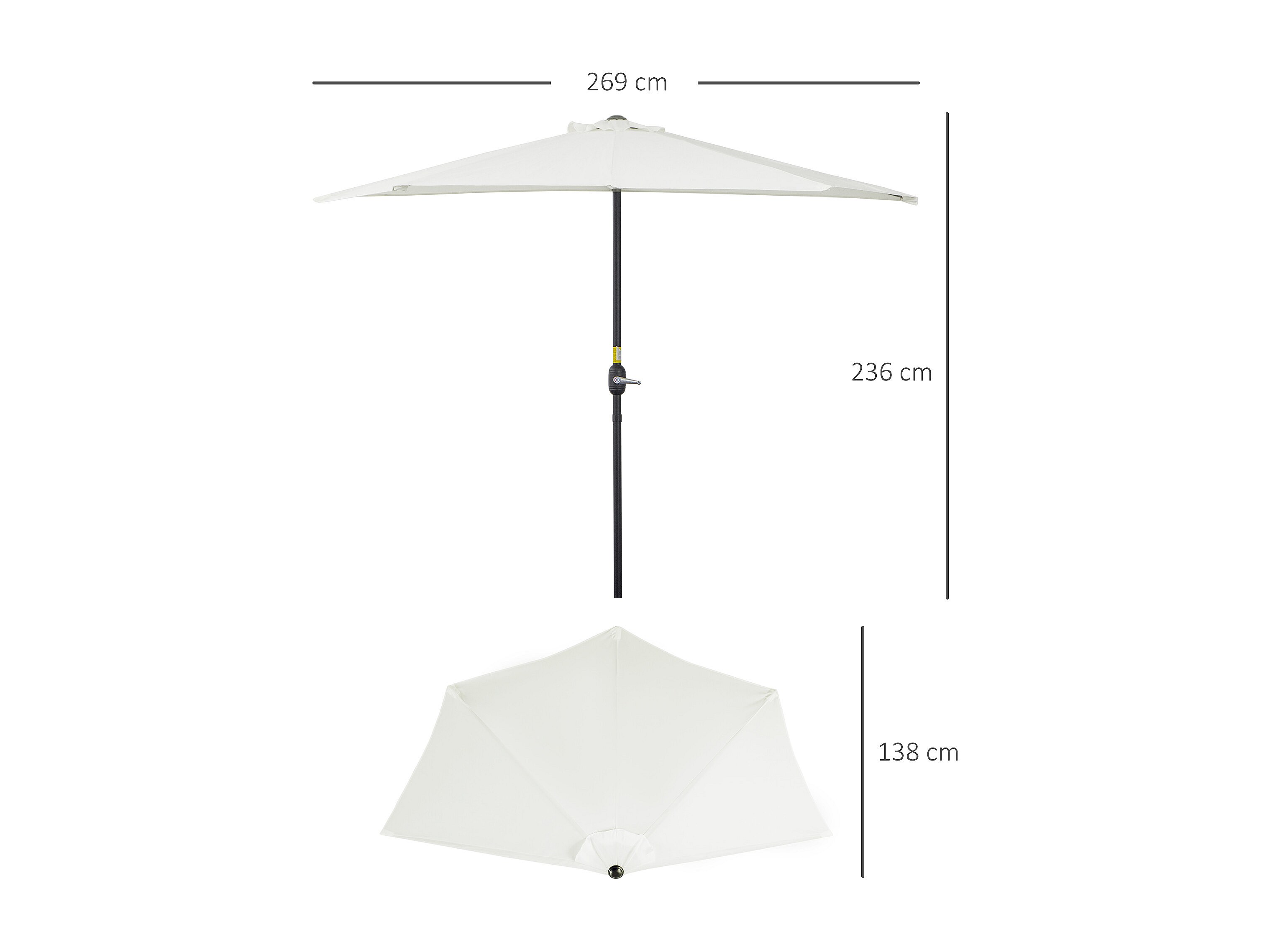 Demi parasol, parasol de balcon 5 entretoises métal polyester 2,69L x 1,38l x 2,36H m crème