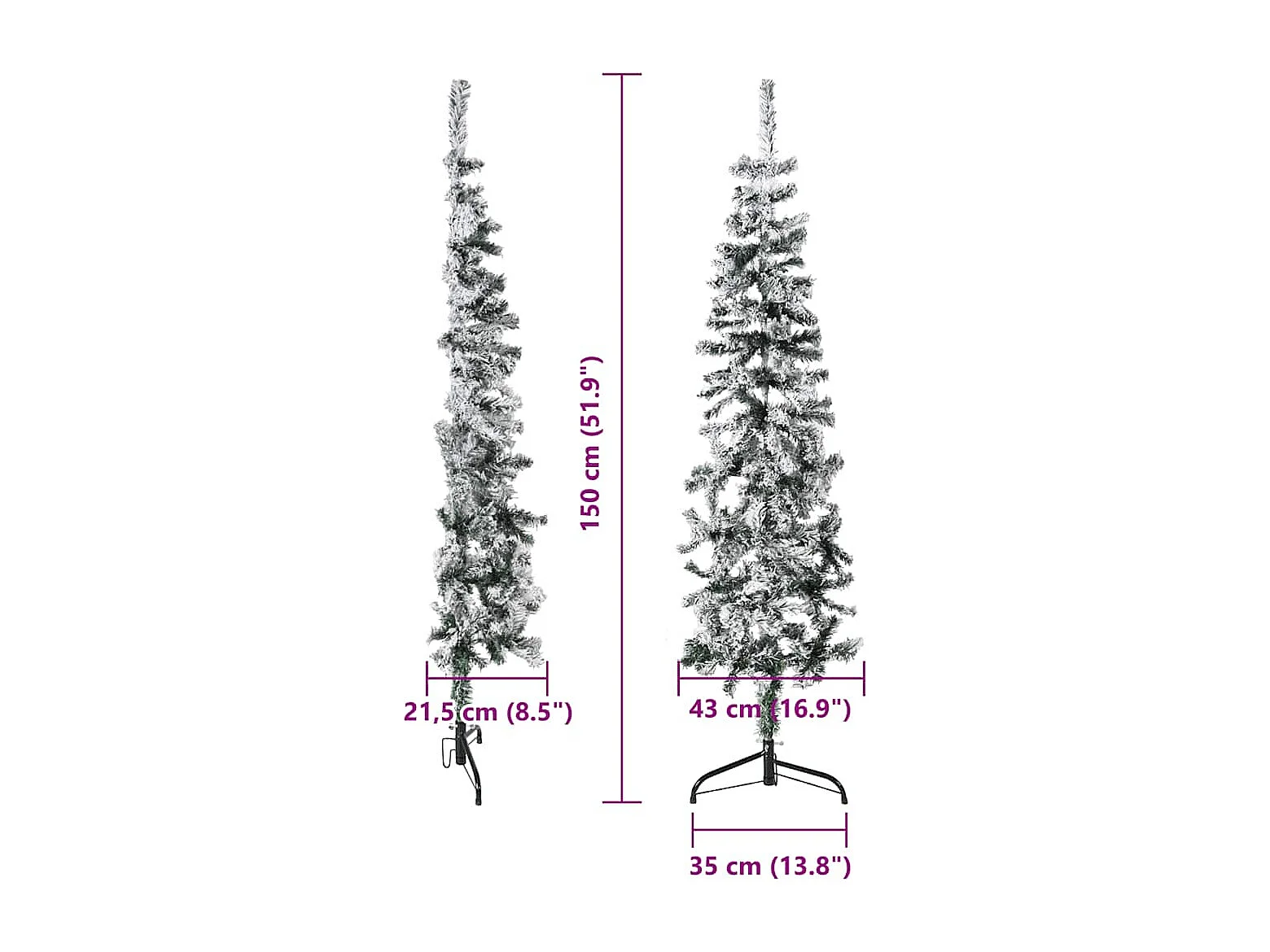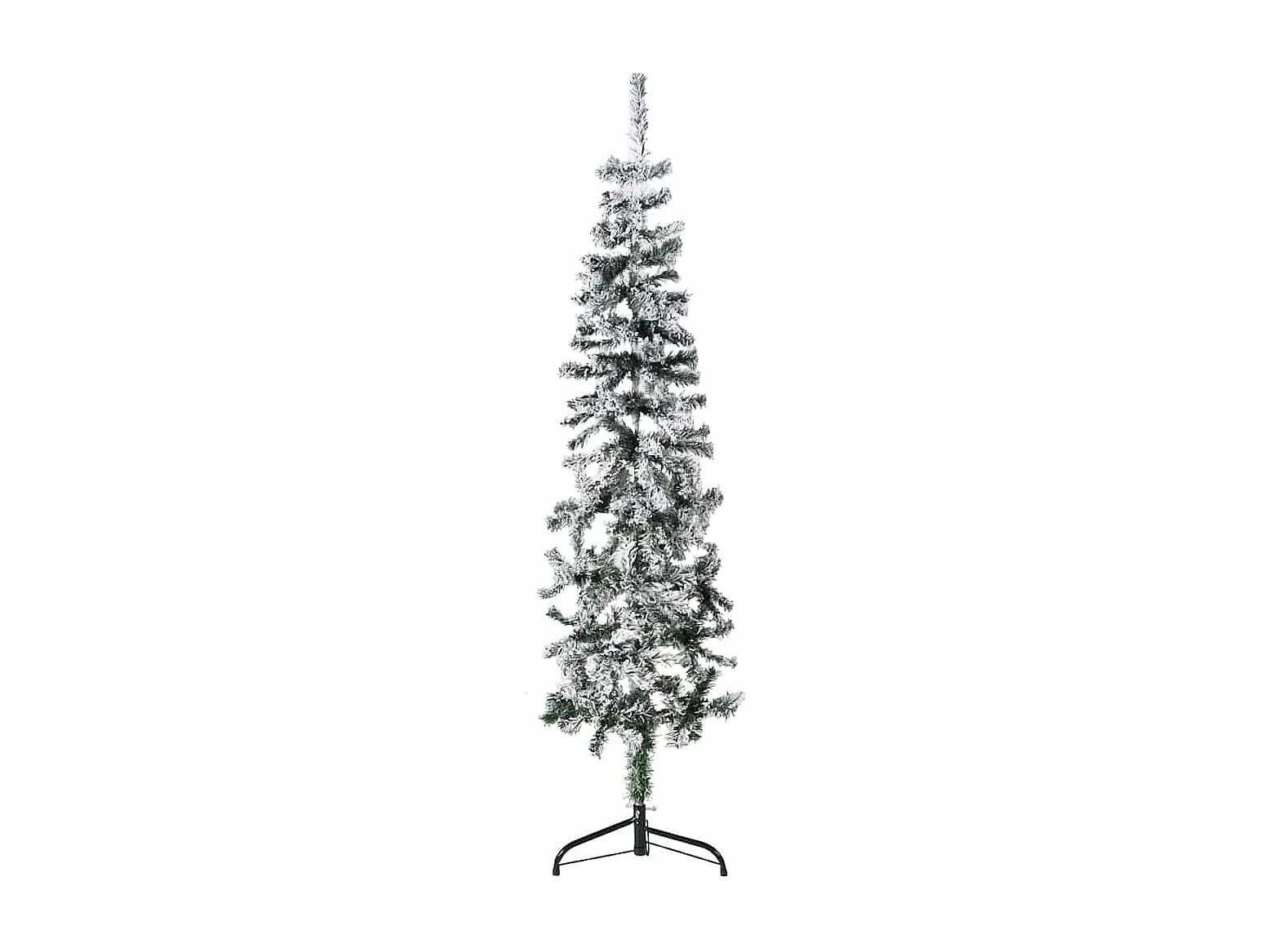 Demi sapin de Noël artificiel mince avec neige floquée 150 cm
