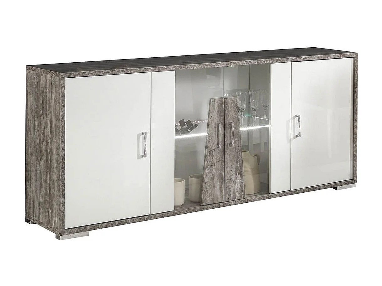 DENYS - Ensemble Séjour Complet Laqué Blanc et Effet Bois Taupe