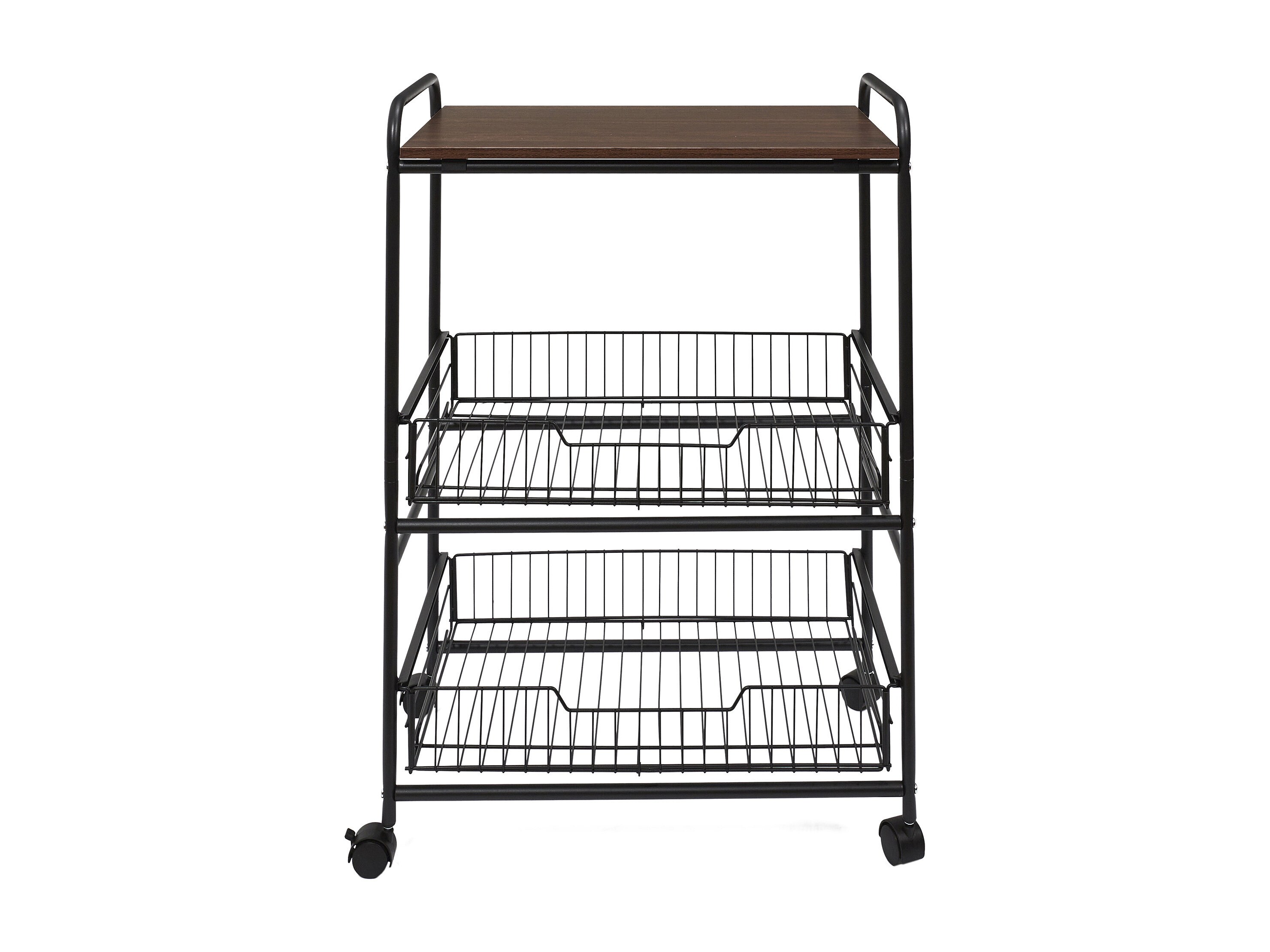 Resserre de cuisine 4 Paniers rotatifs sur roues en Métal Noir H 76 cm