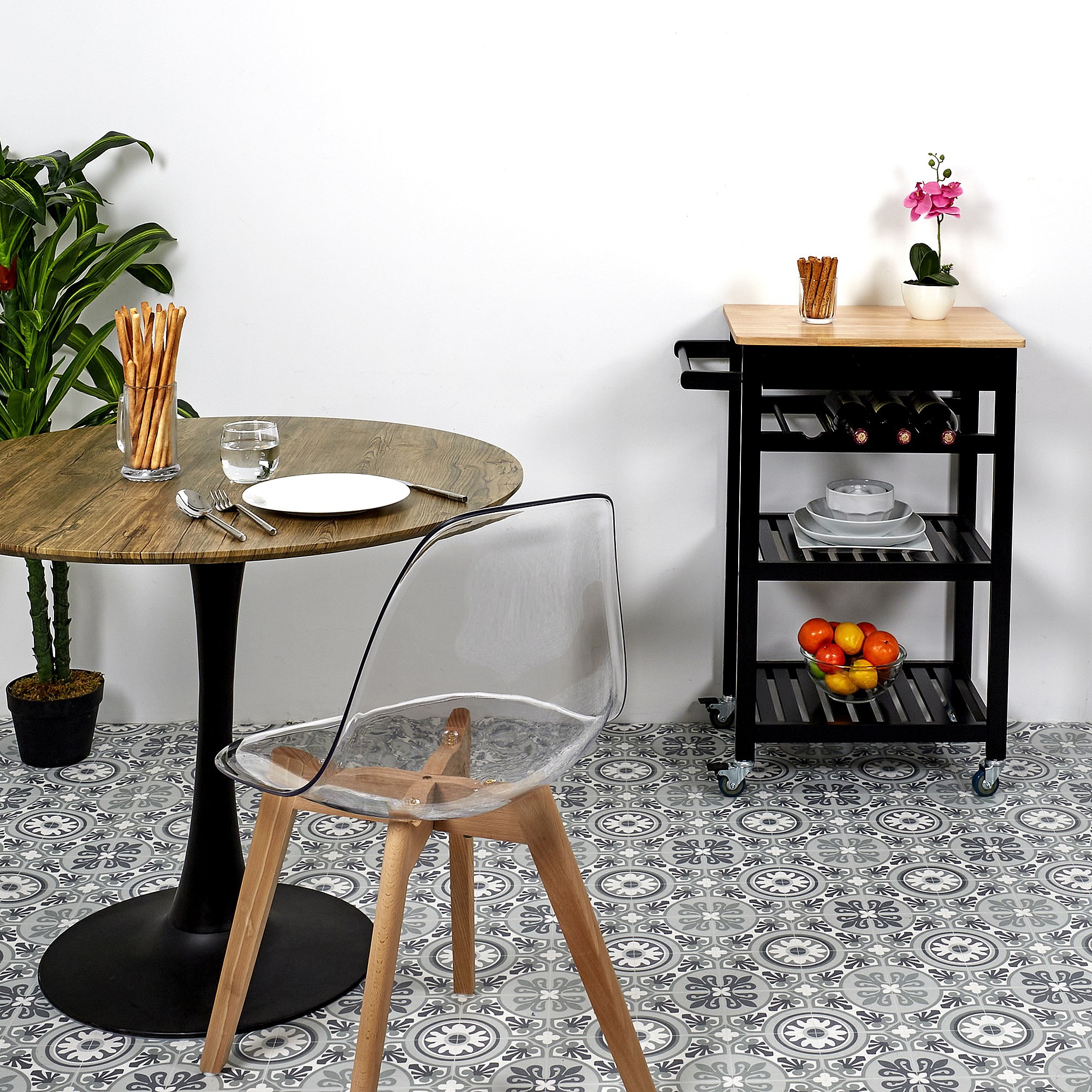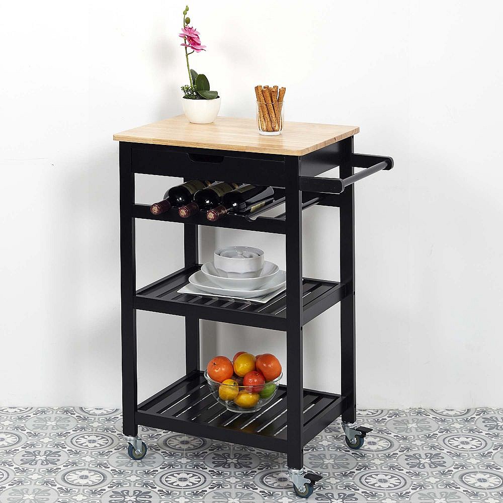 Meuble Desserte de cuisine roulante en Bois Noir et Naturel H 87 cm