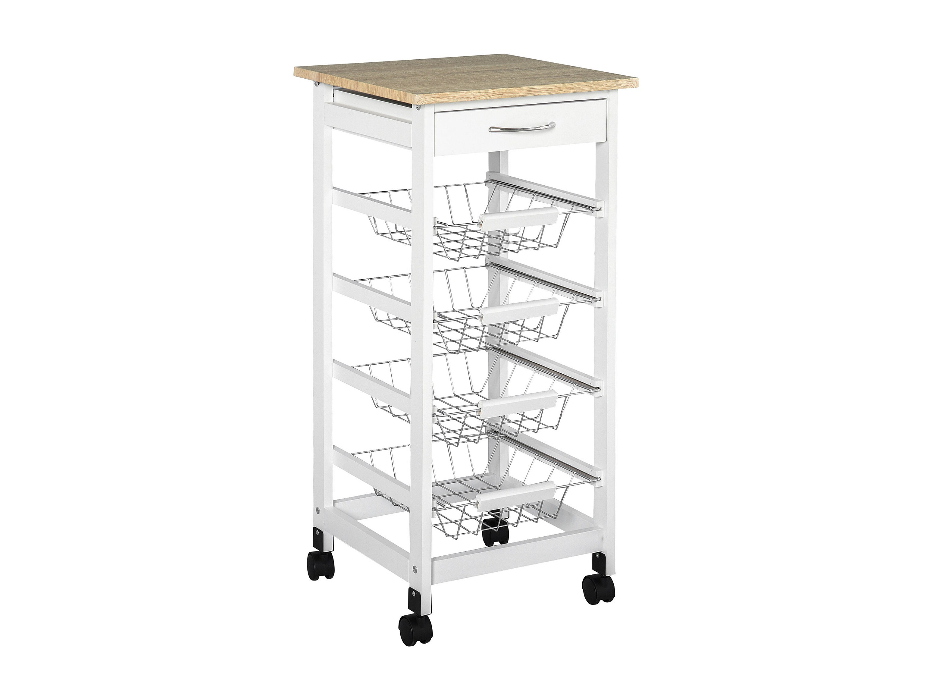 Desserte chariot de cuisine sur roulettes - 4 paniers coulissants, tiroir, plateau - bois blanc MDF bois clair