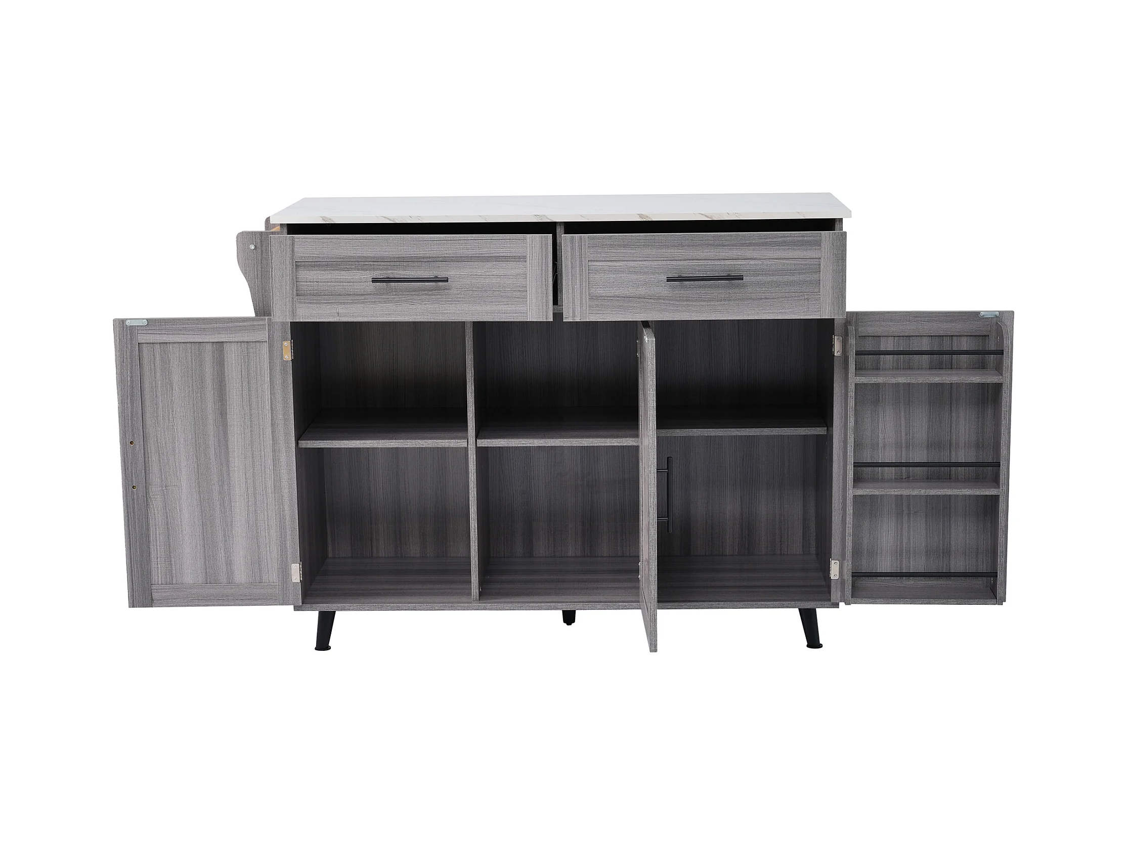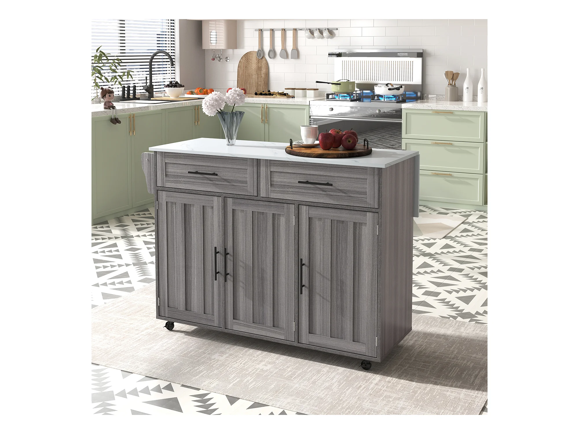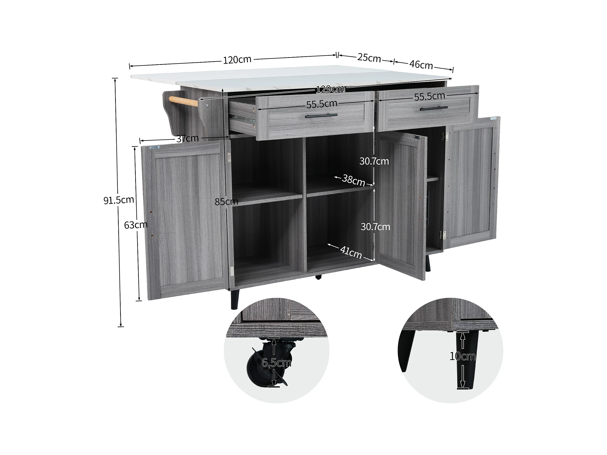 Desserte de cuisine (120x71x91.5cm)extensible avec roulettes, rangements modulables et plateau rabattable - gris