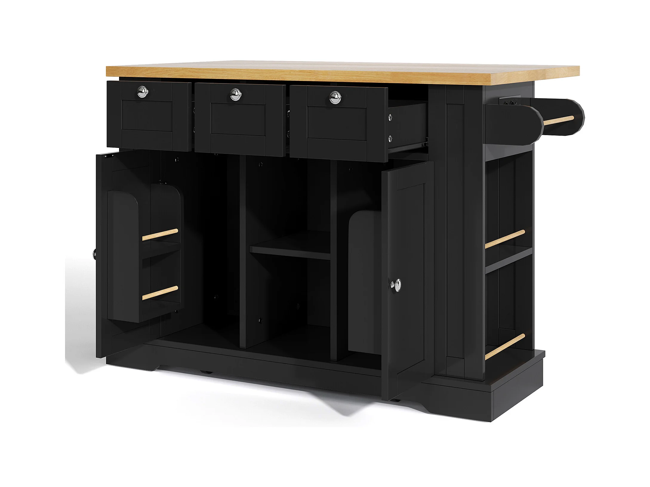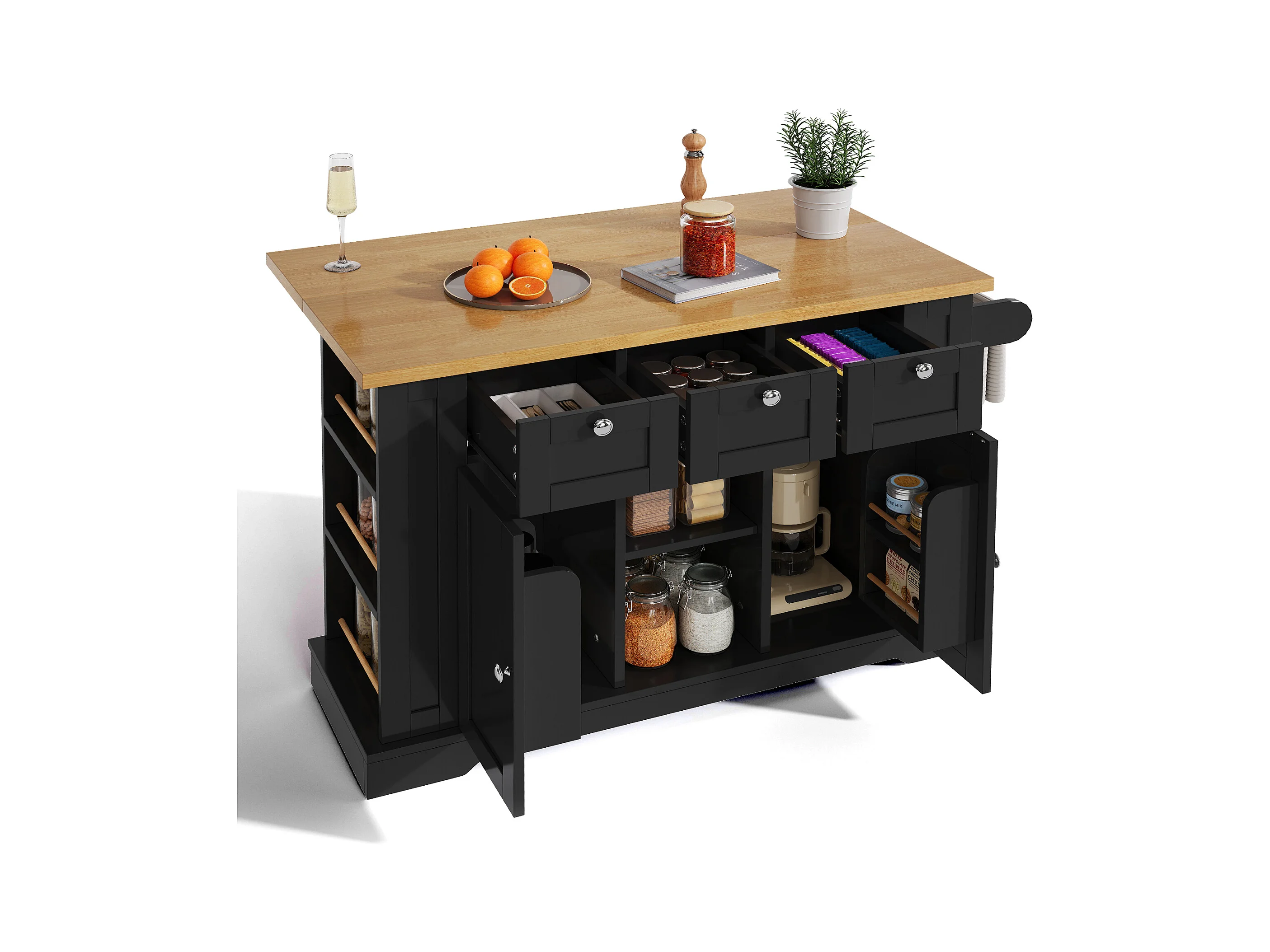 Desserte de cuisine (132x70x87cm) avec plan de travail extensible, rangements et prises USB intégrées - noir