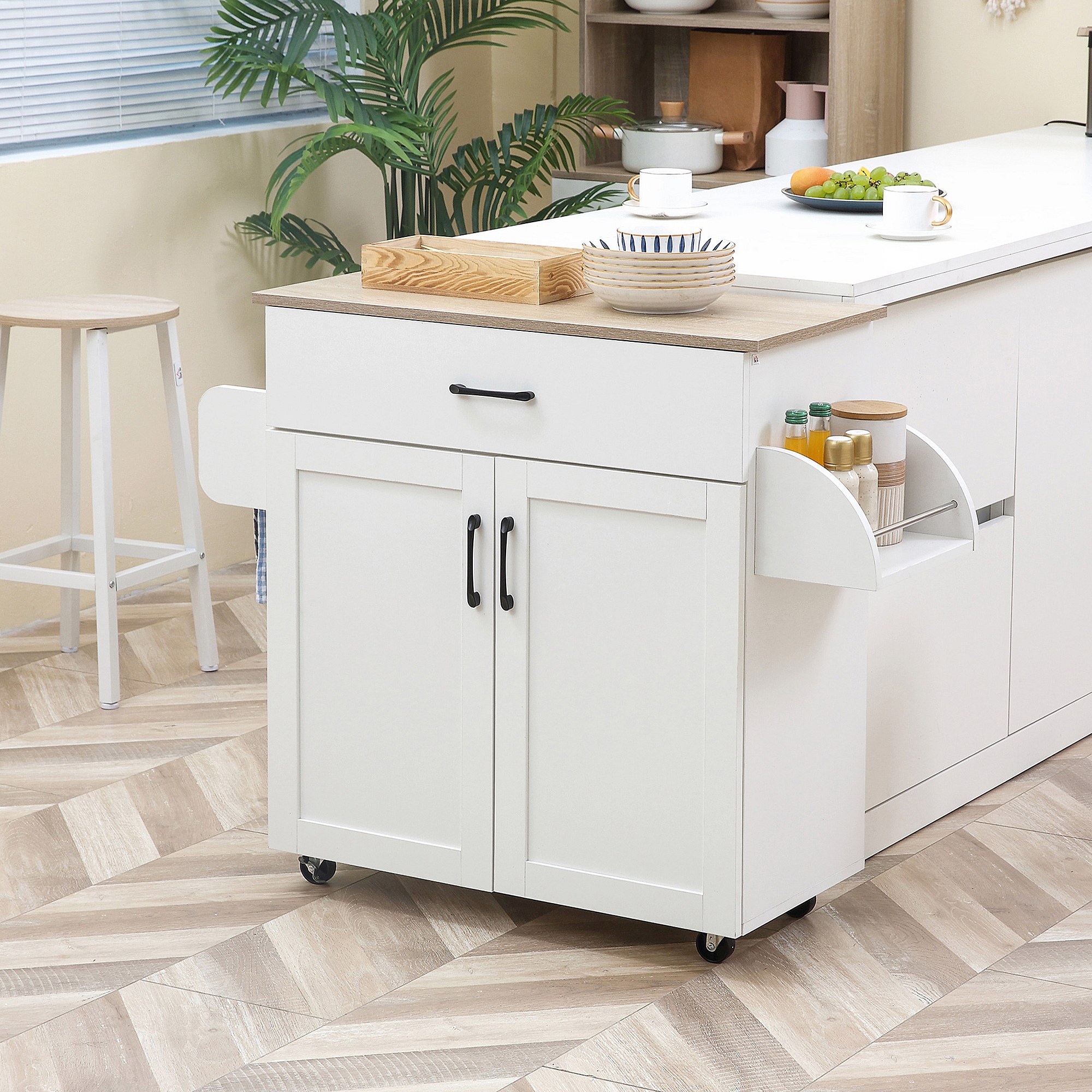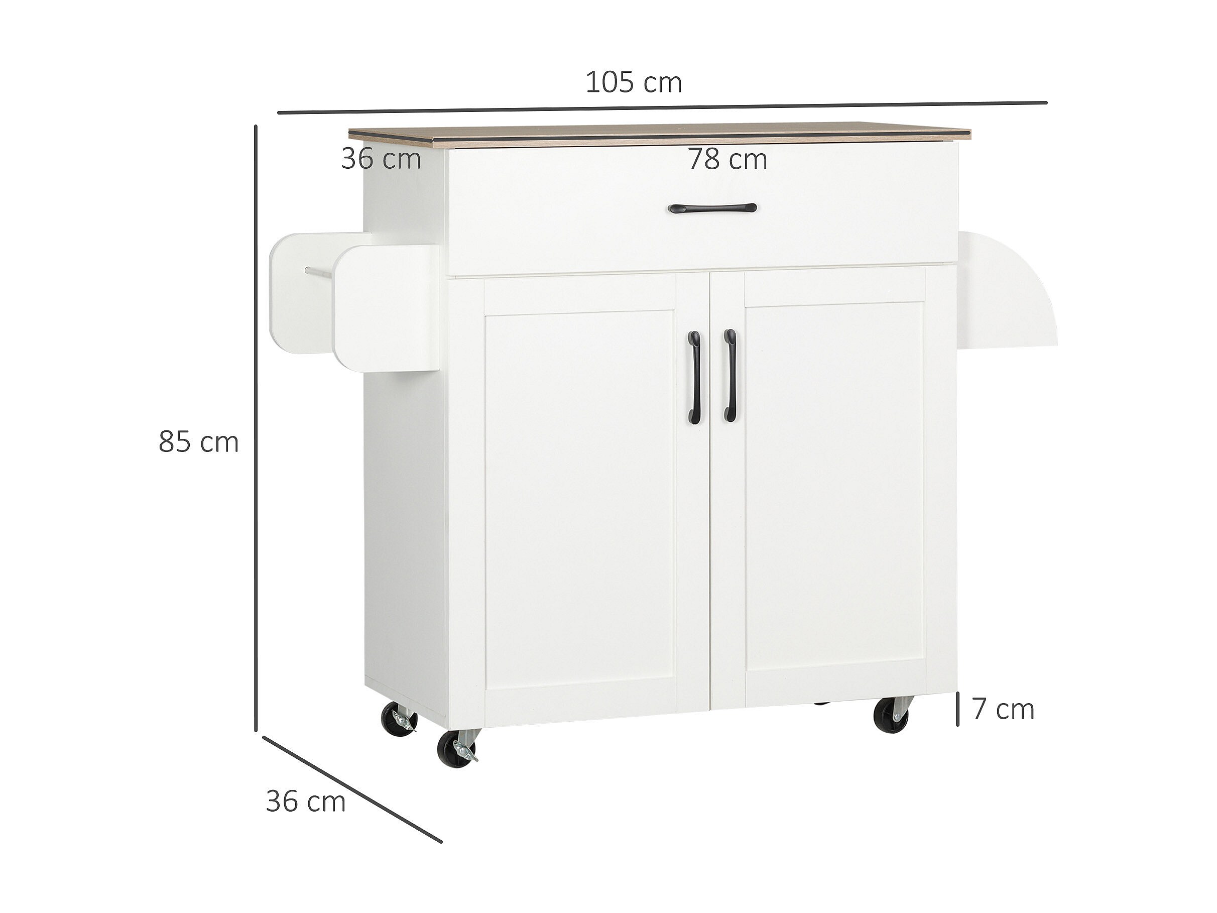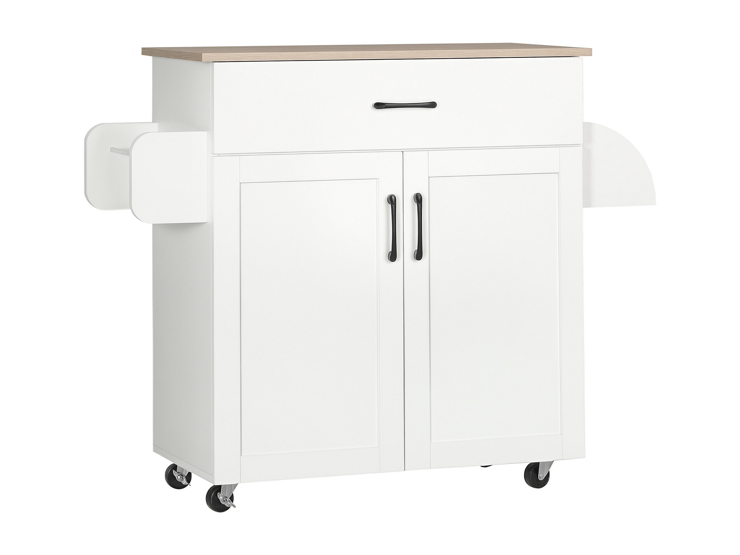 Desserte Roulante Chariot De Cuisine Avec Etagère Latérale, Portes Et Tiroirs, Fkw108-w