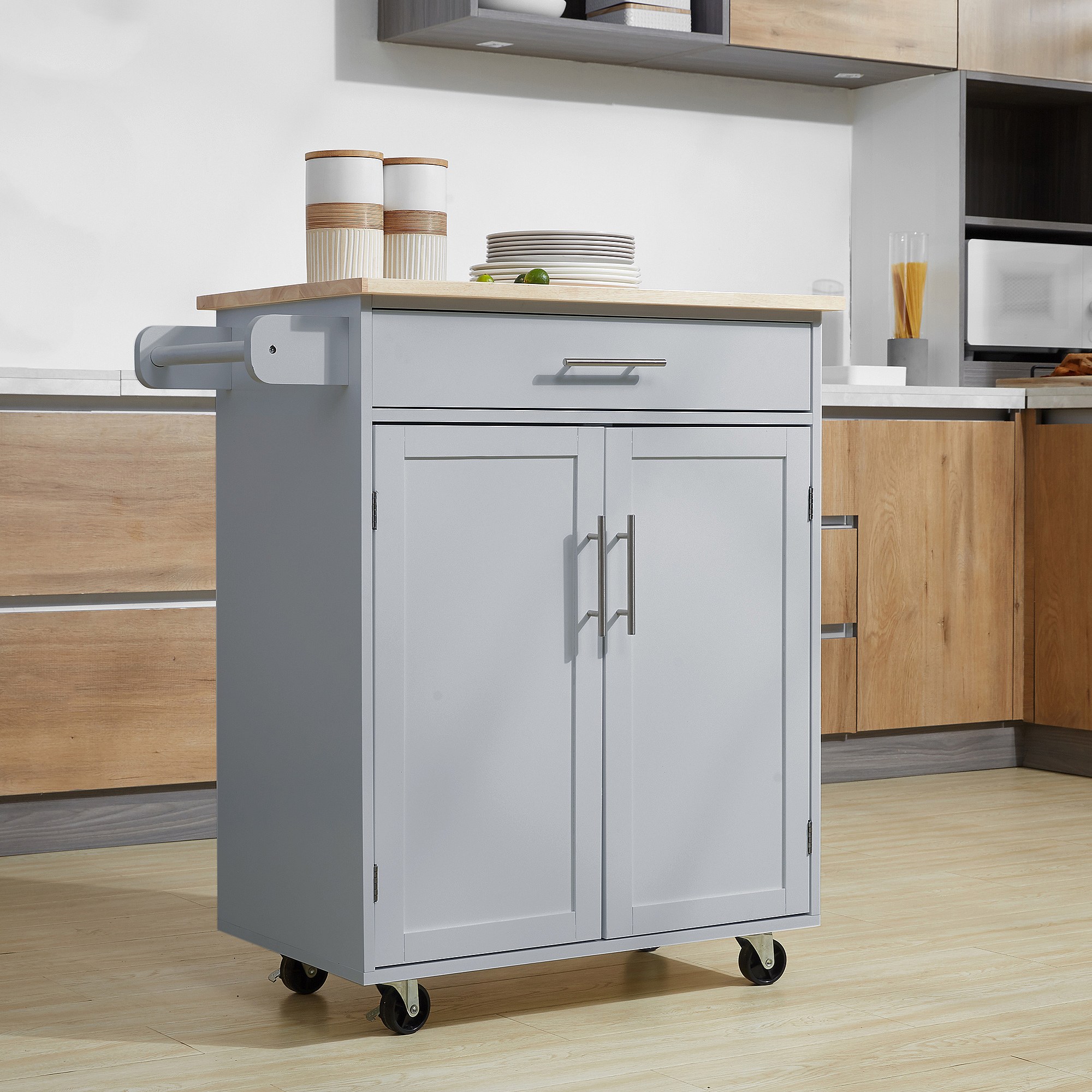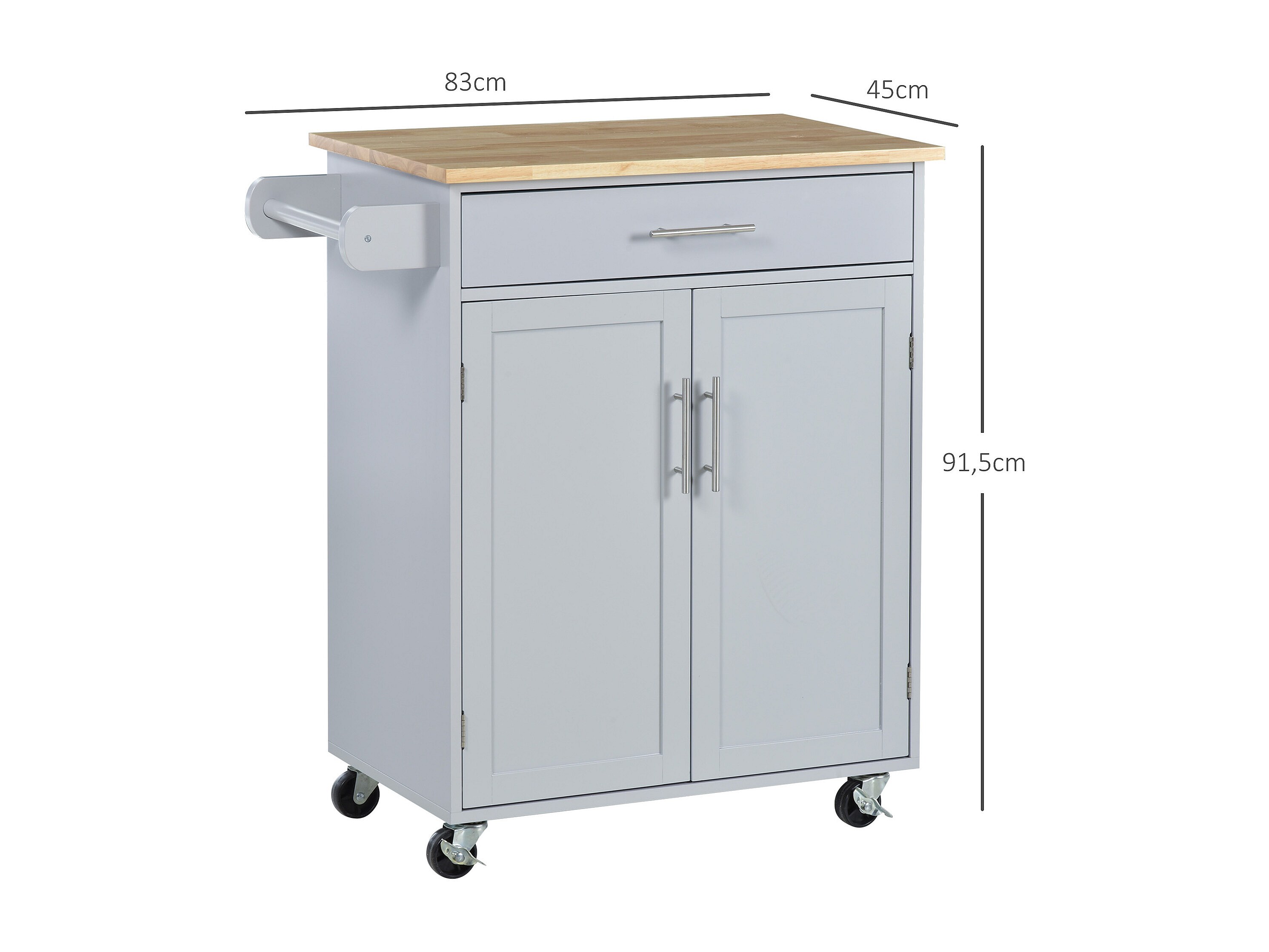 Desserte de cuisine - 2 portes, étagère, tiroir, porte-torchons - bois hévéa pin gris
