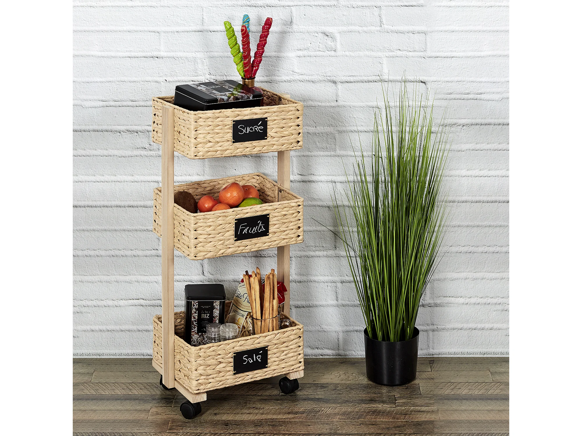 Desserte A Roulettes 3 Paniers Tresses Beige