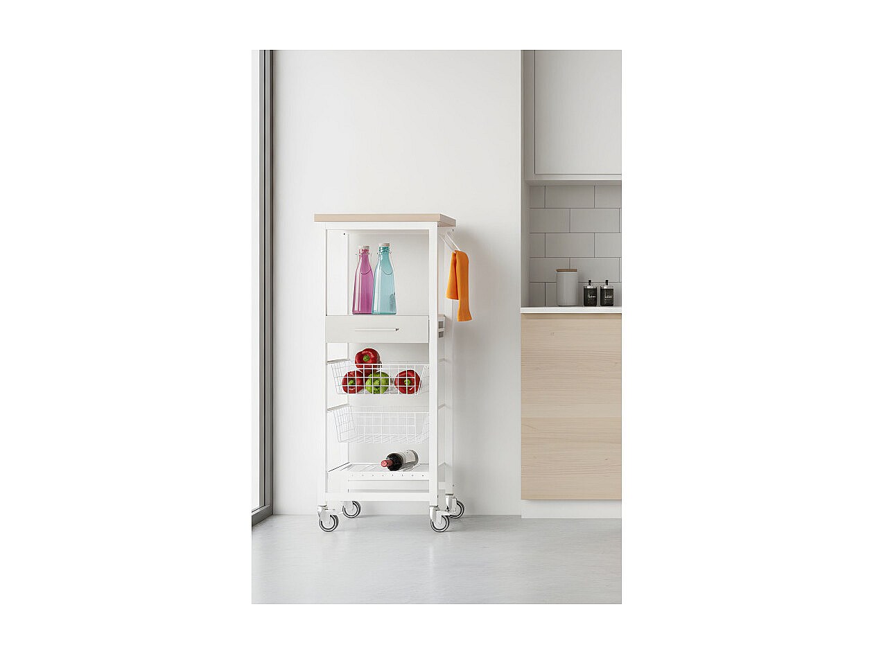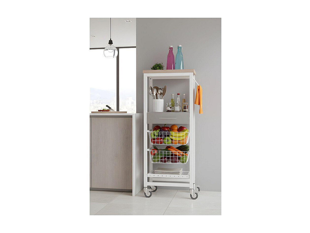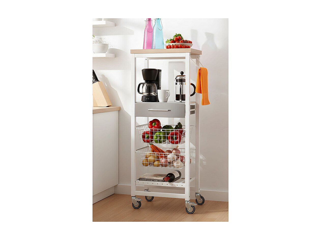 Desserte de cuisine haut, chariot de rangement - couleur Blanc, Inox, Orme - 123*48,5*34 cm - ONDA ALTO