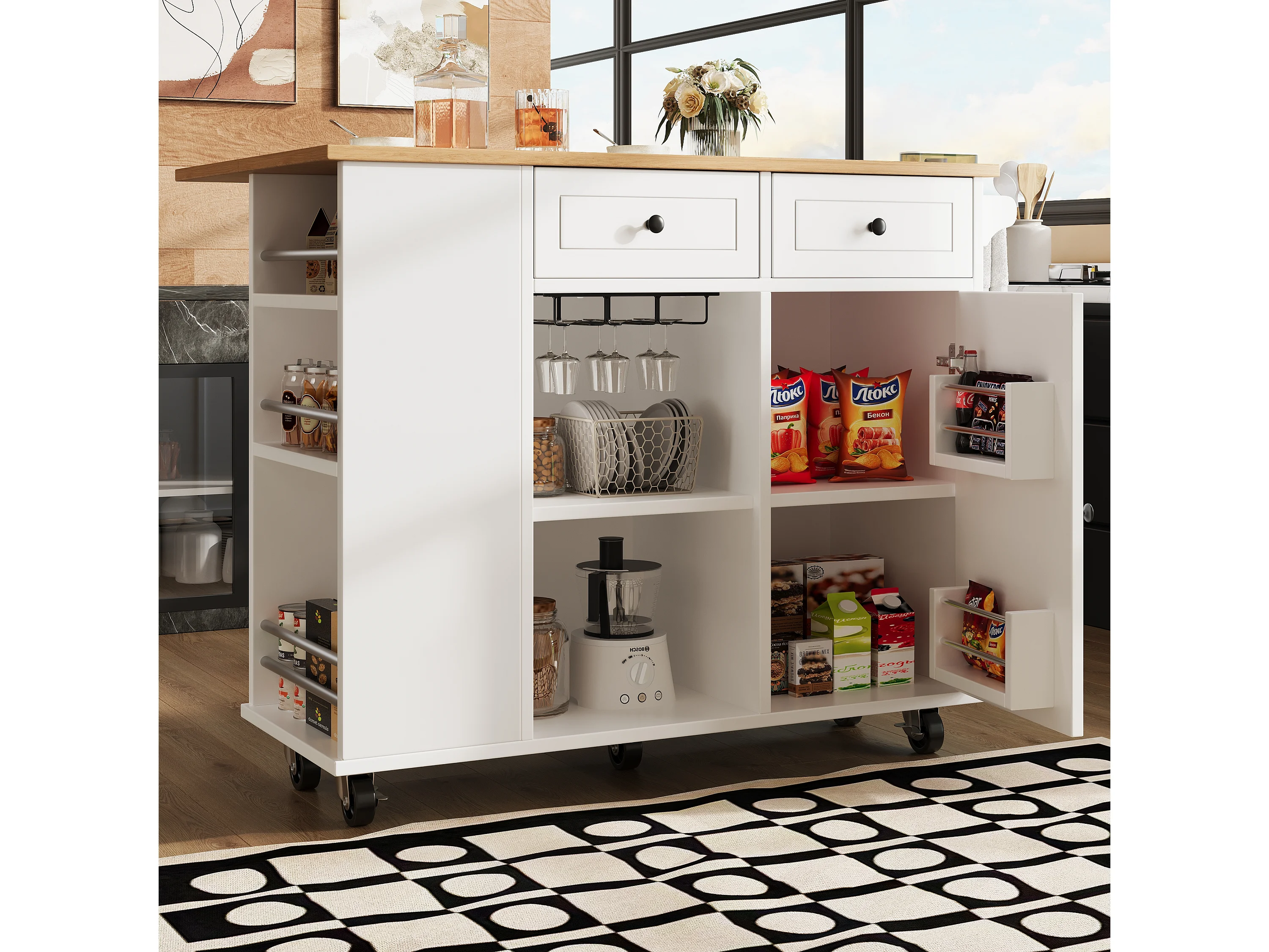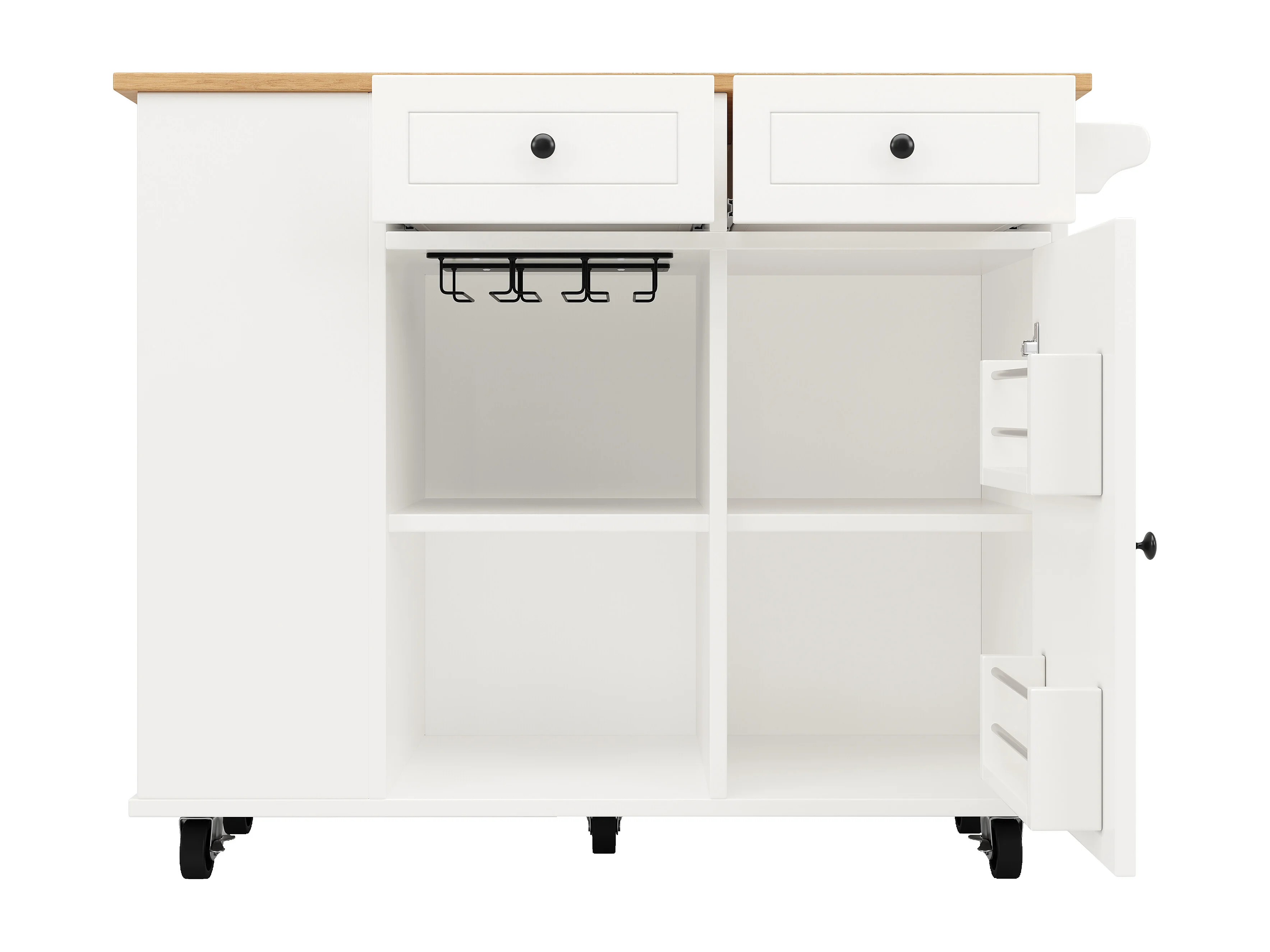 Desserte de cuisine 120x(42-76)x91.5 cm 1 porte et 2 tiroirs Îlot de cuisine avec plateau extensible - blanc