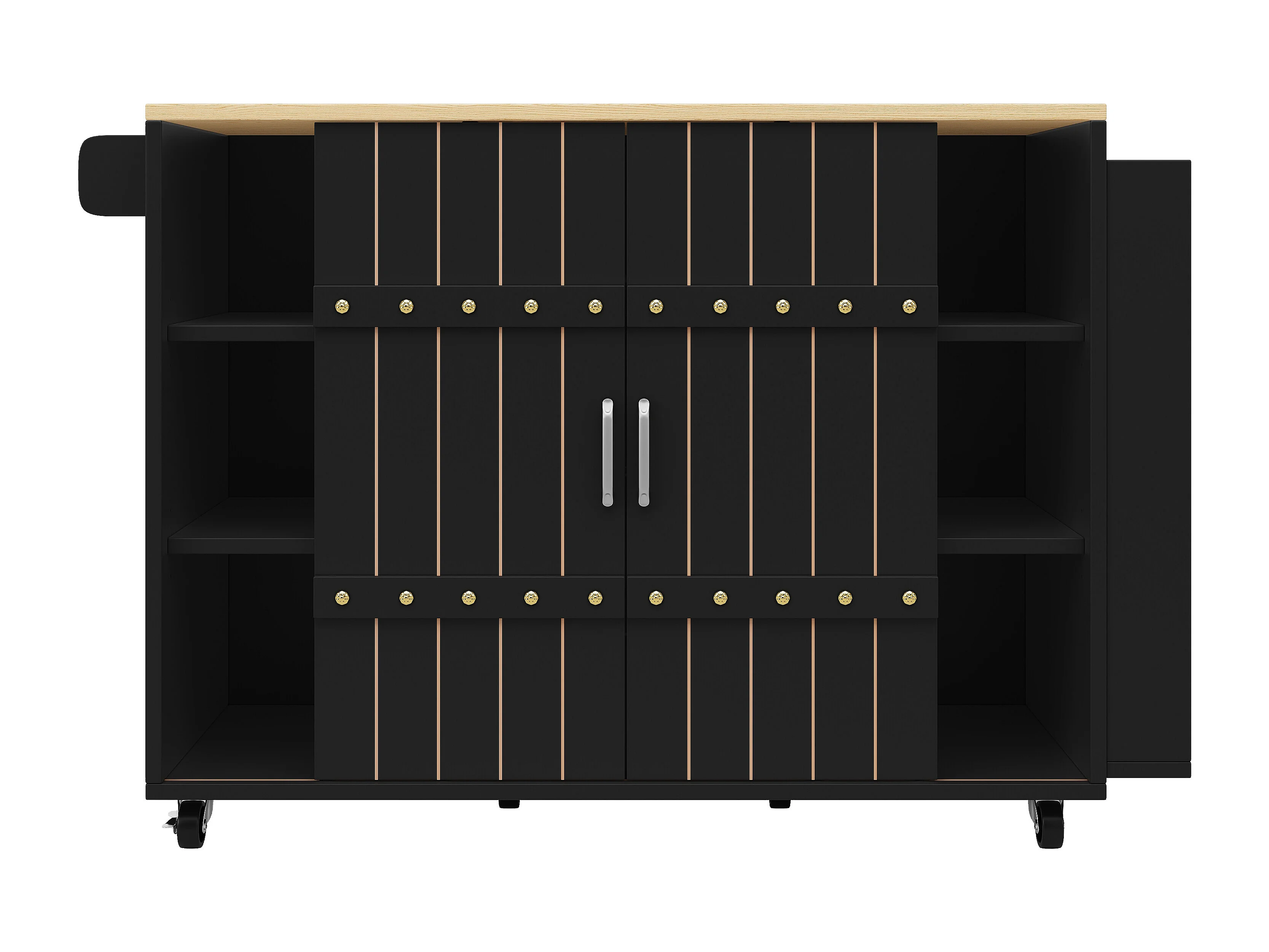 Desserte de cuisine mobile - Îlot de cuisine noir avec porte coulissante et roulettes - plan de travail pliable - 3 tiroirs