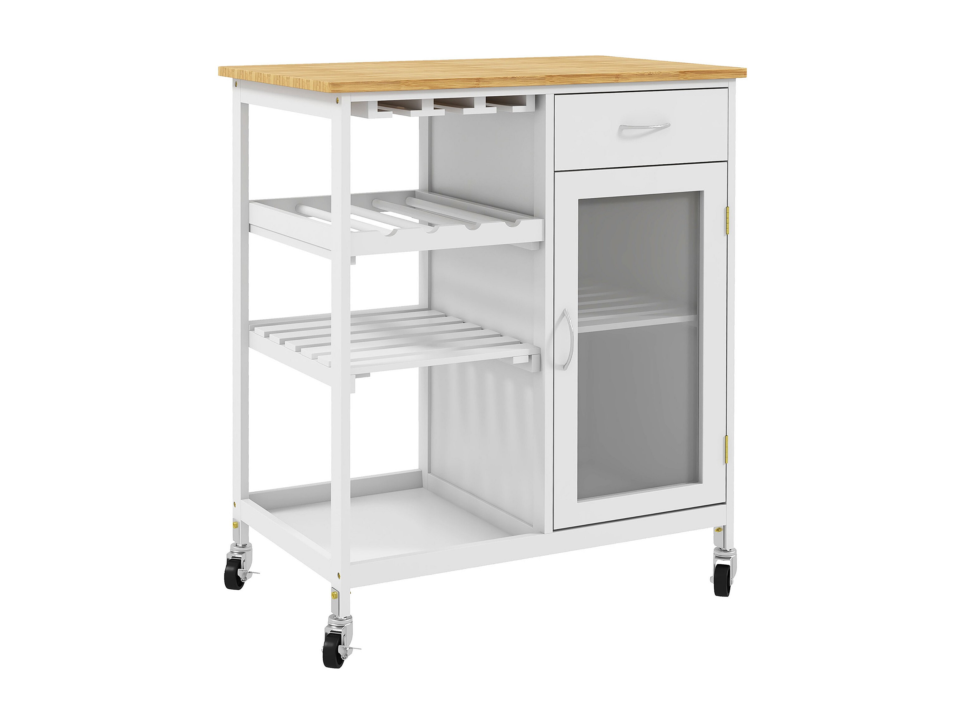 Desserte de cuisine multi-rangements - dim. 73L x 50l x 91H cm - poignées métal MDF blanc plateau bois bambou verni