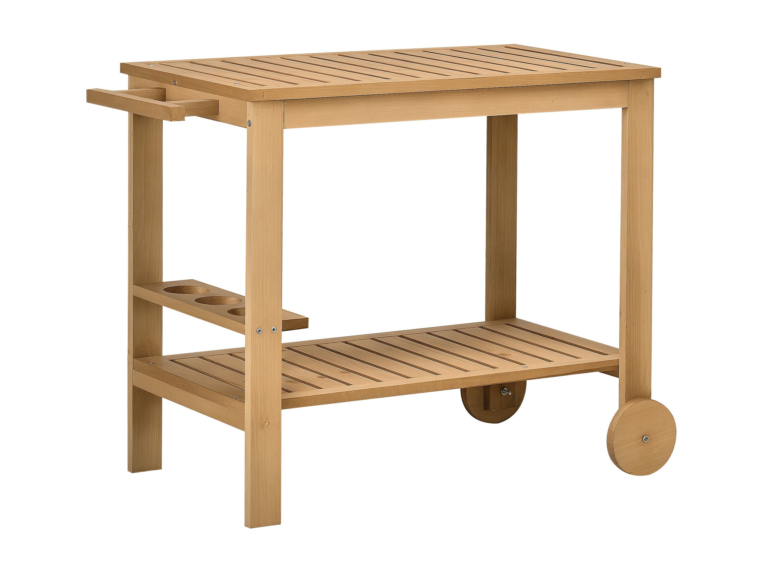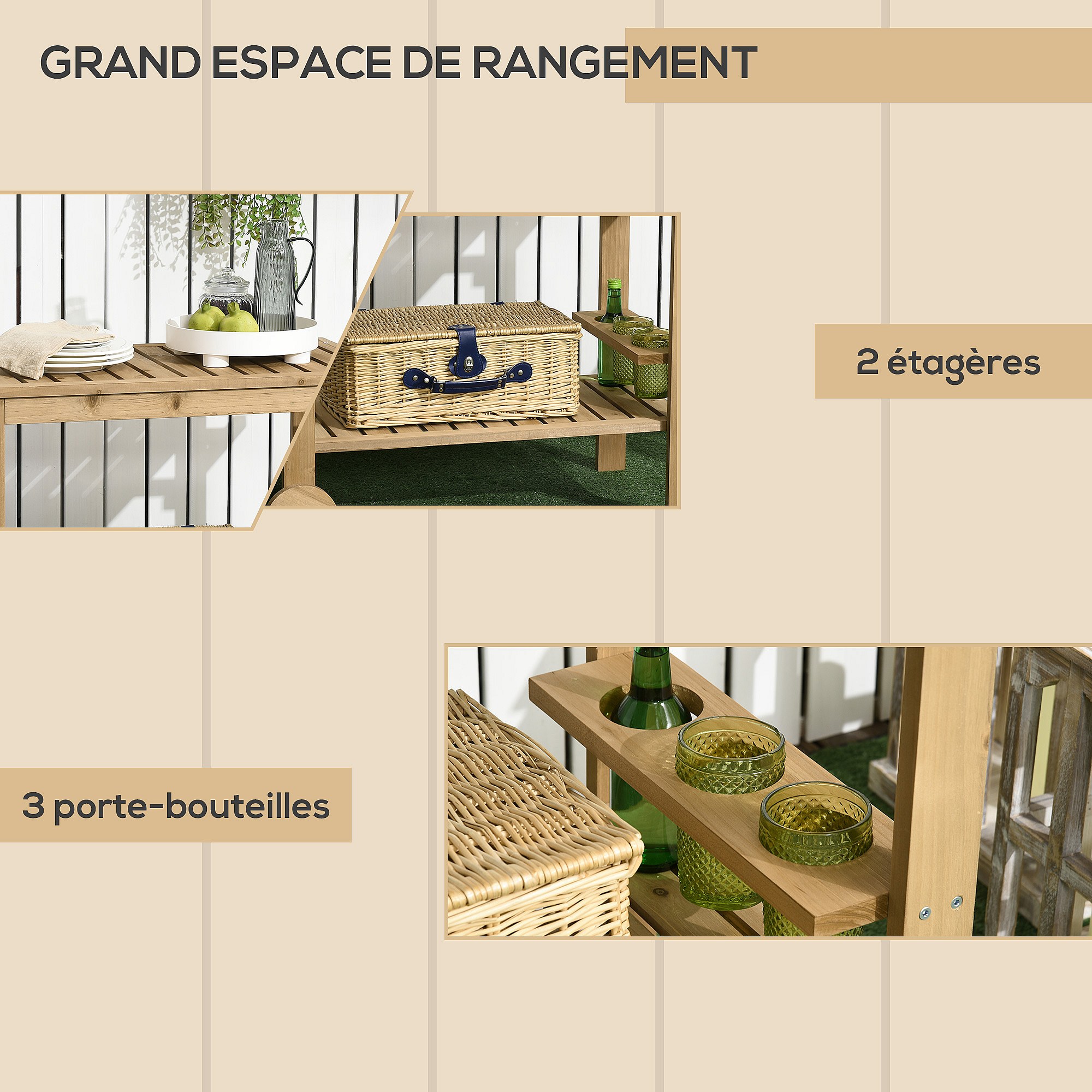 Desserte de jardin - desserte pour plancha - étagère, 3 porte-bouteilles, 2 roues, poignée - bois sapin pré-huilé