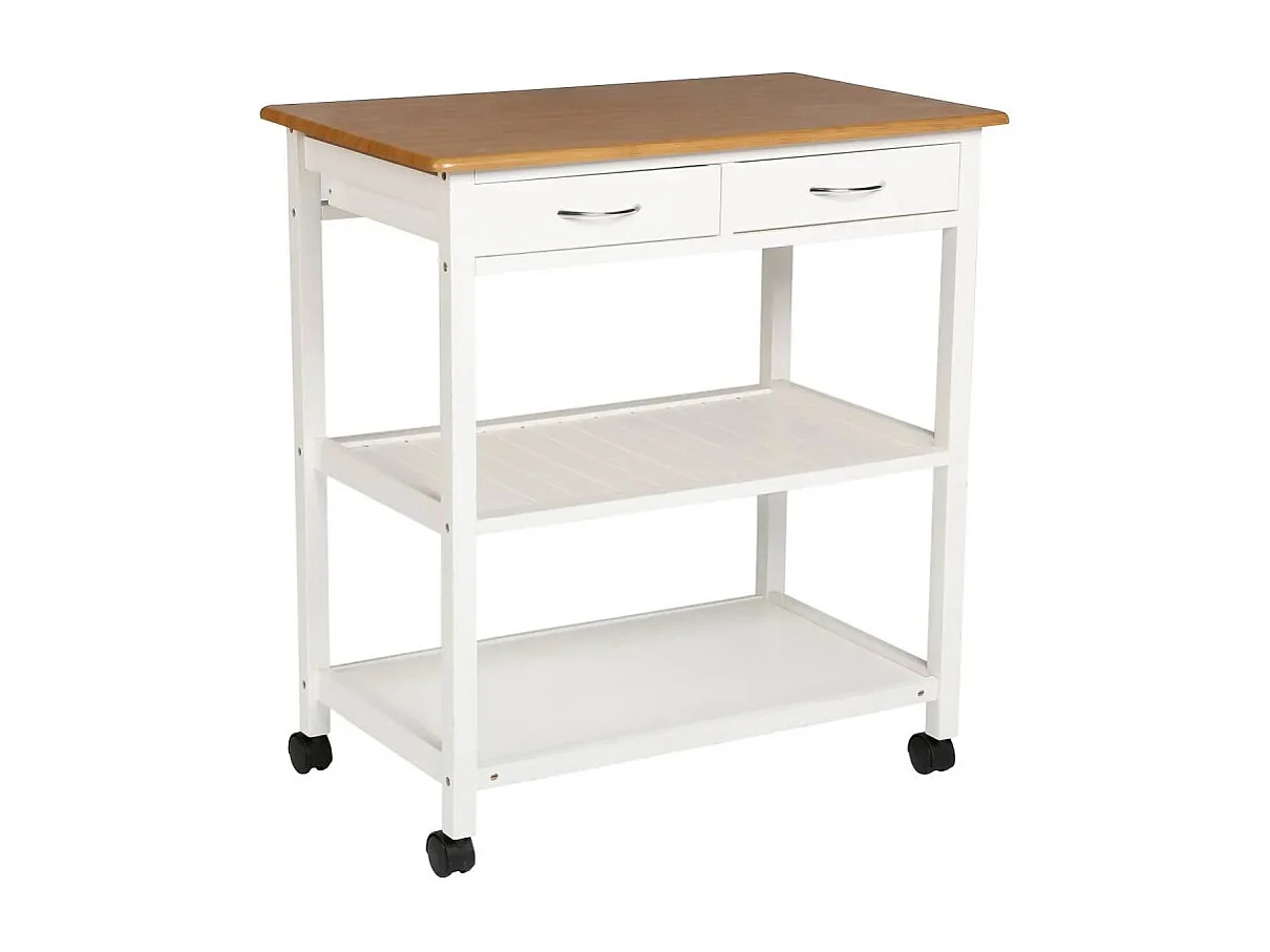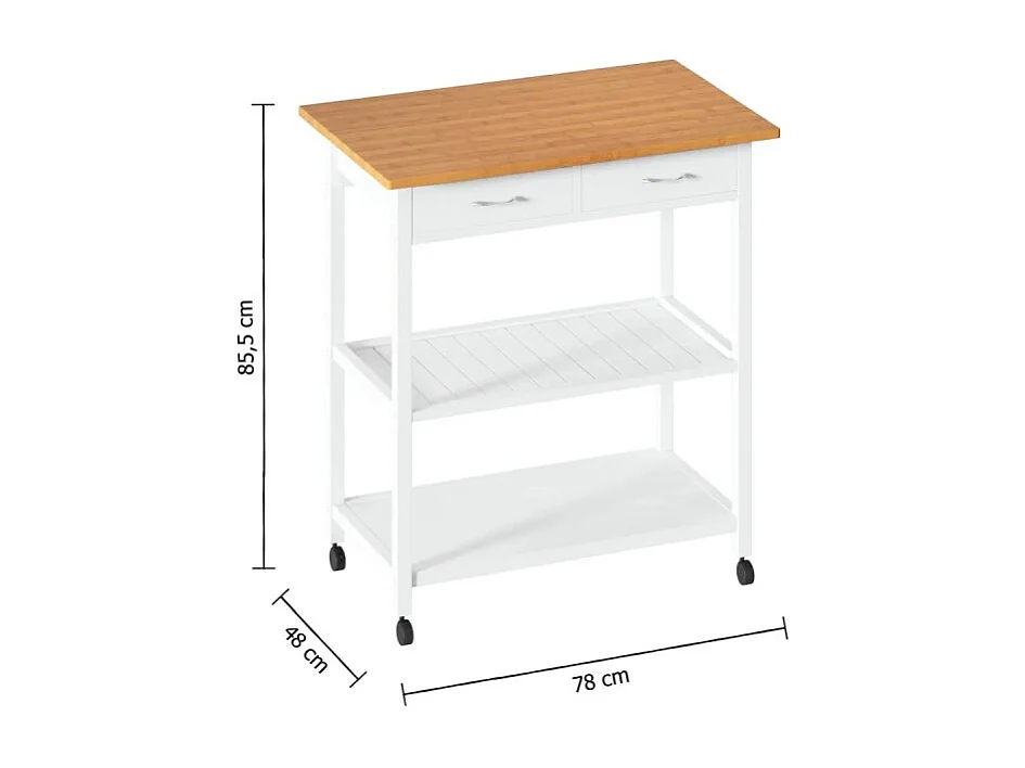 Desserte de cuisine en bois coloris blanc, naturel - Longueur 78 x Profondeur 48 x Hauteur 87 cm