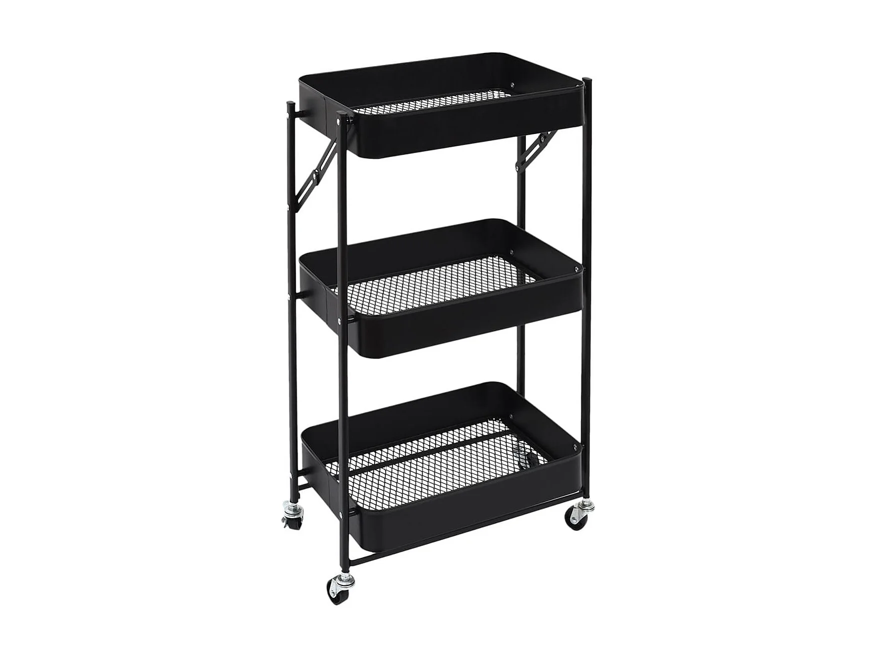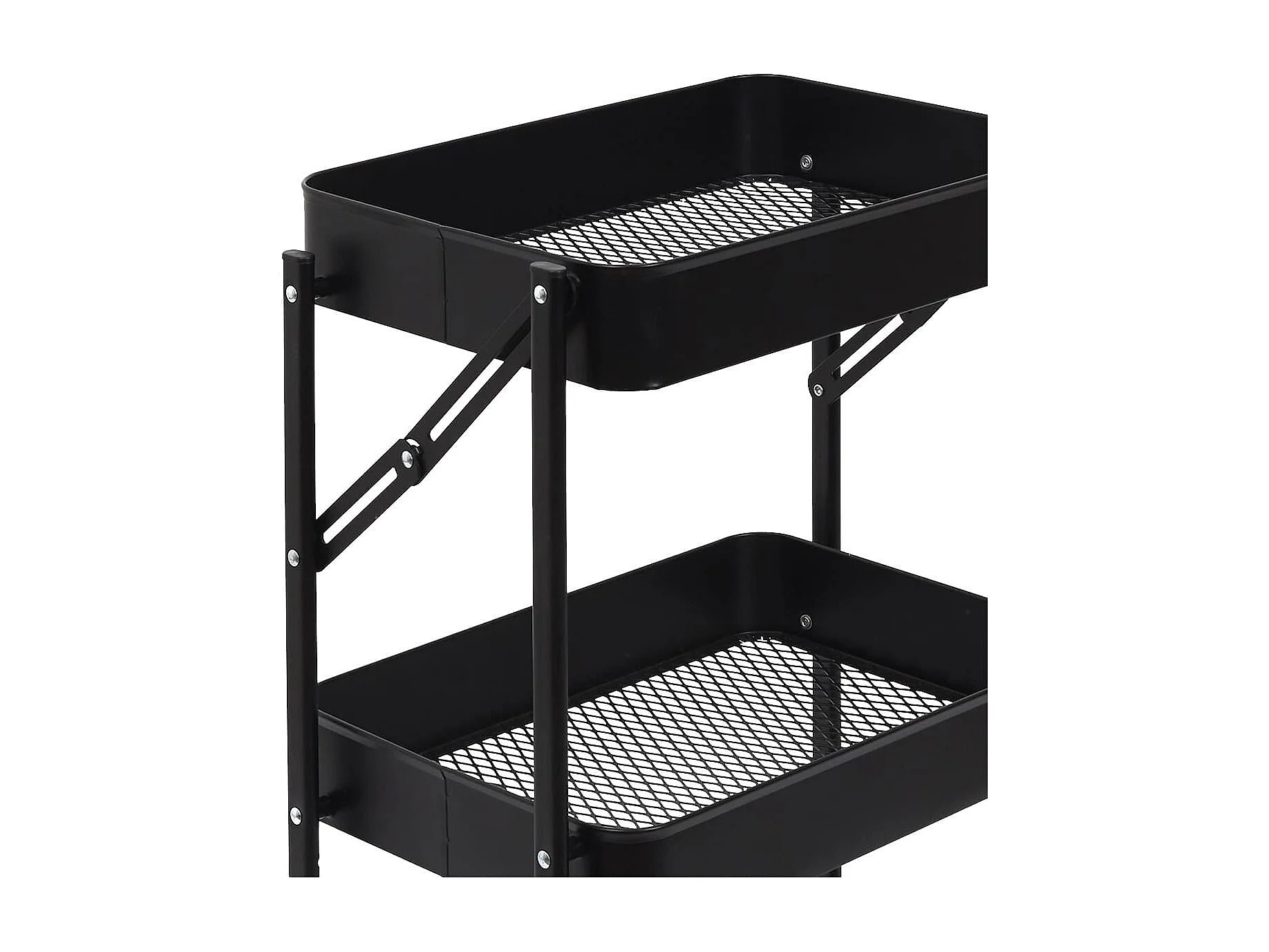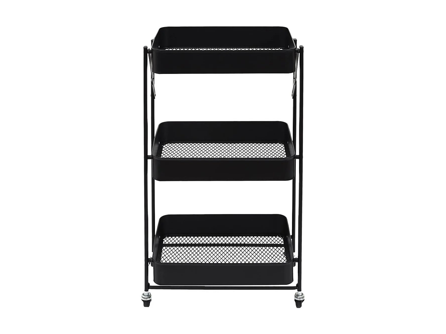 Desserte Pliable à Roulettes Industrielle en Métal Noir 3 Niveaux - MIKAS