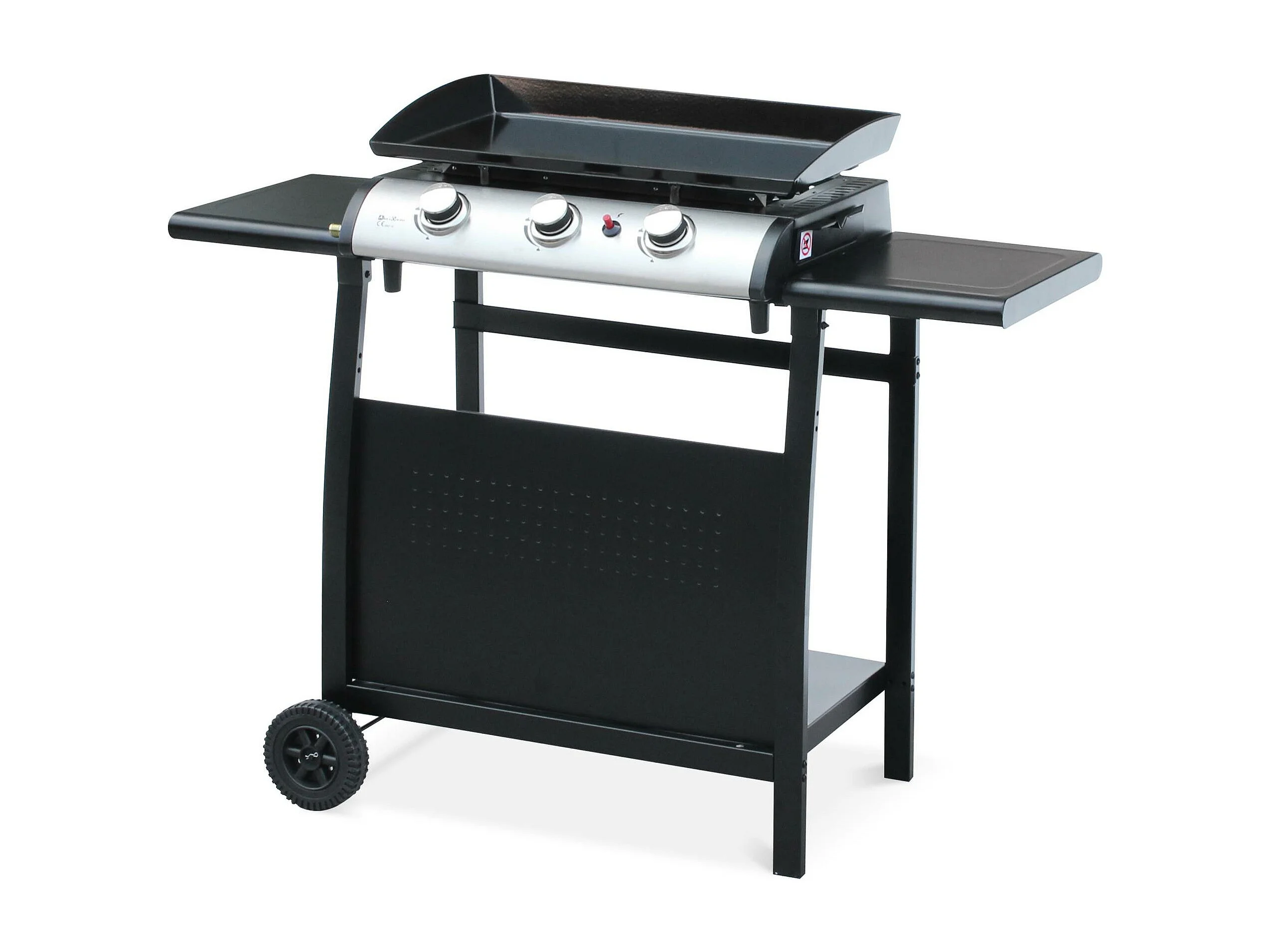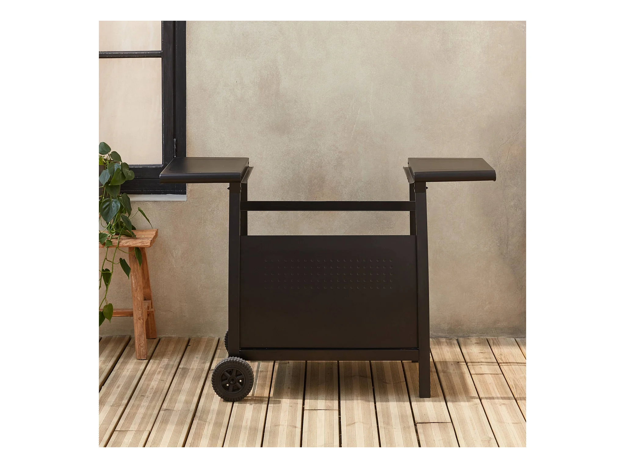 Desserte pour plancha au gaz - Chariot Porthos 3 brûleurs - Chariot barbecue noir. cuisine extérieure. roulettes