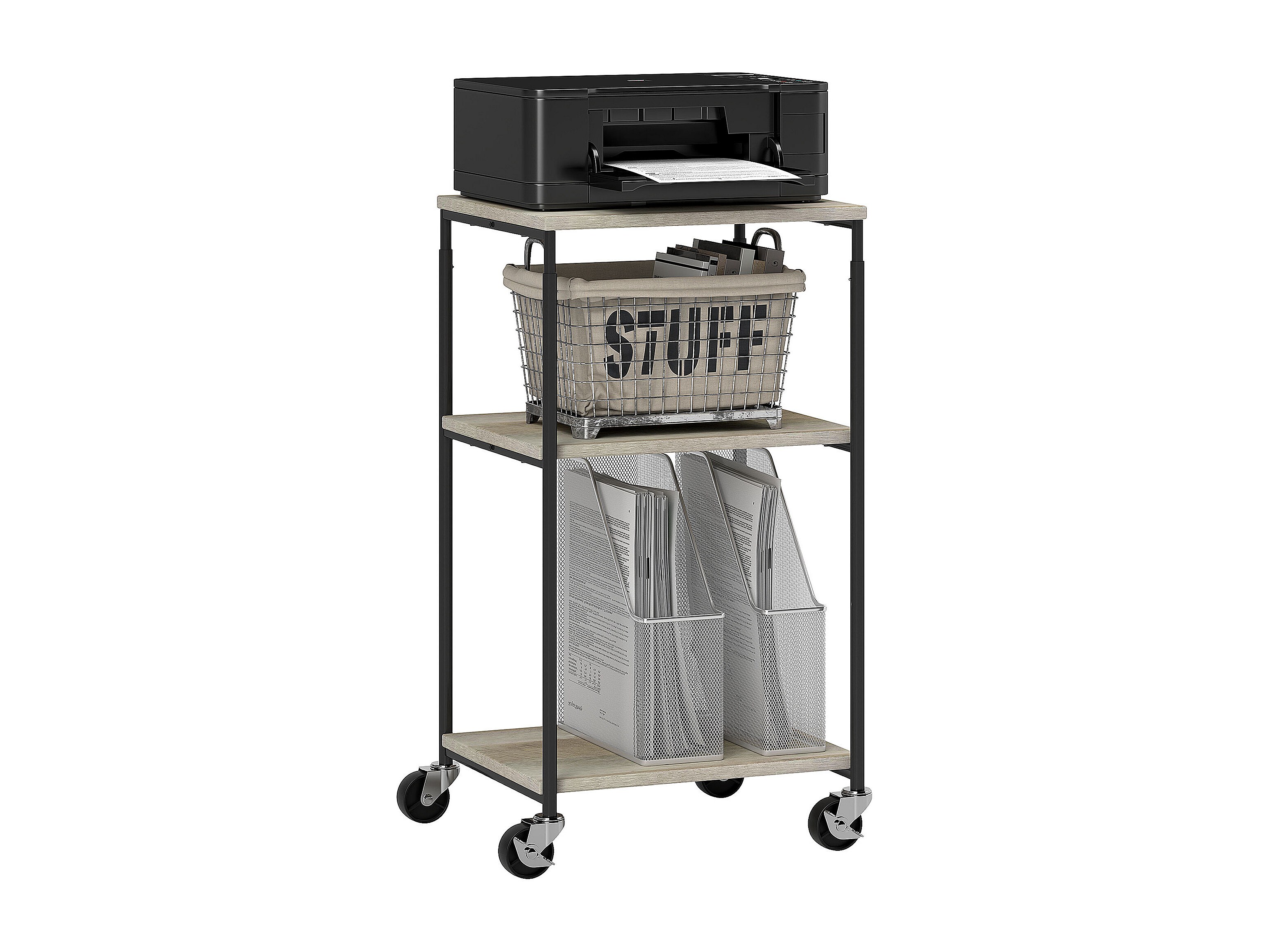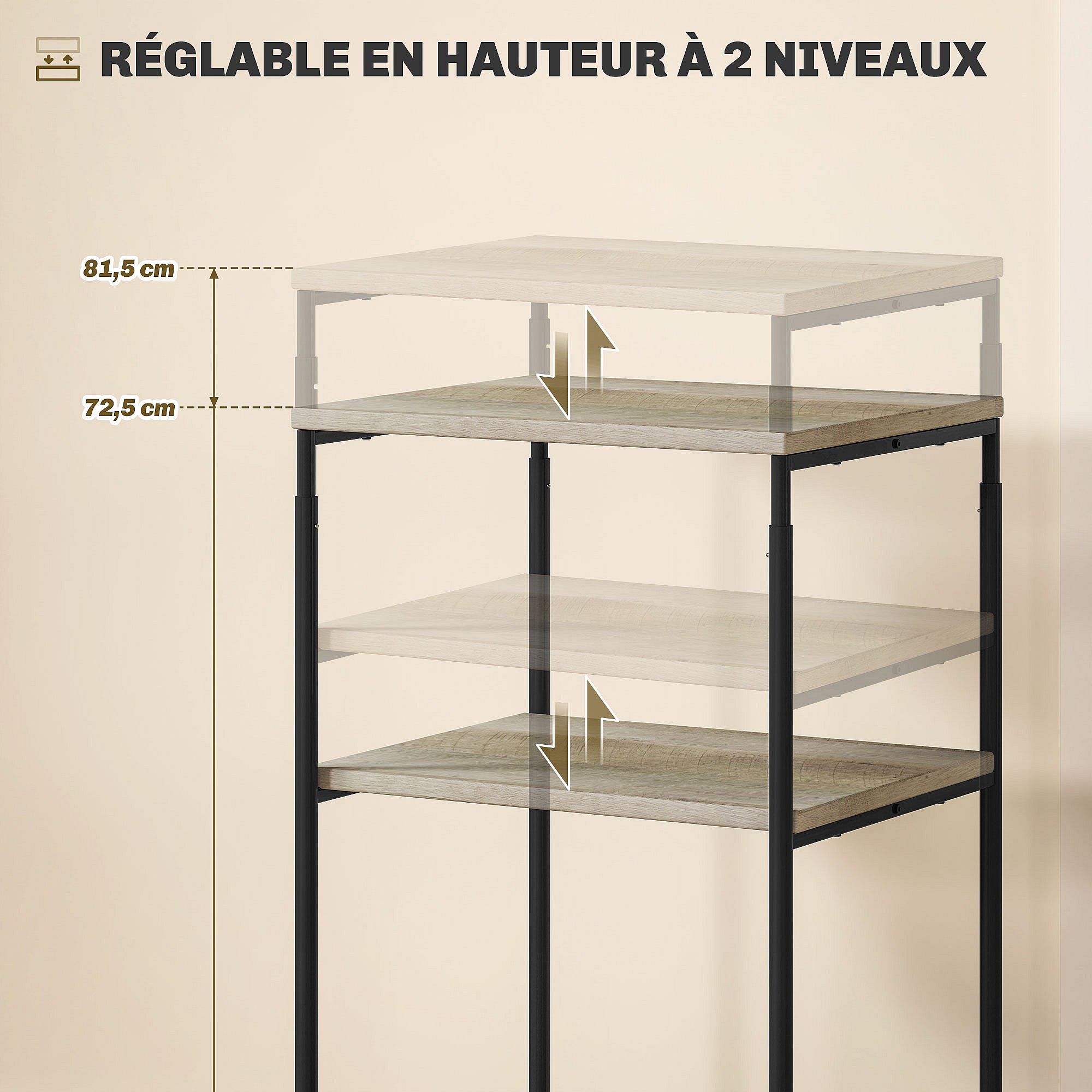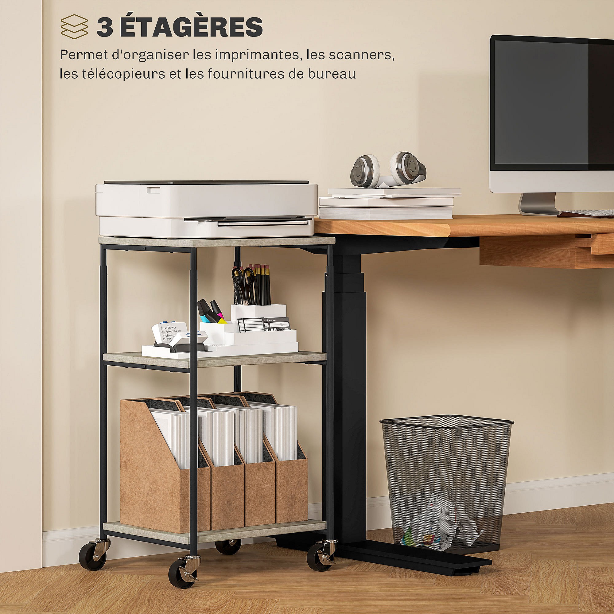 Desserte support d'imprimante 2 étagères et plateau - hauteur réglable - acier noir aspect bois gris