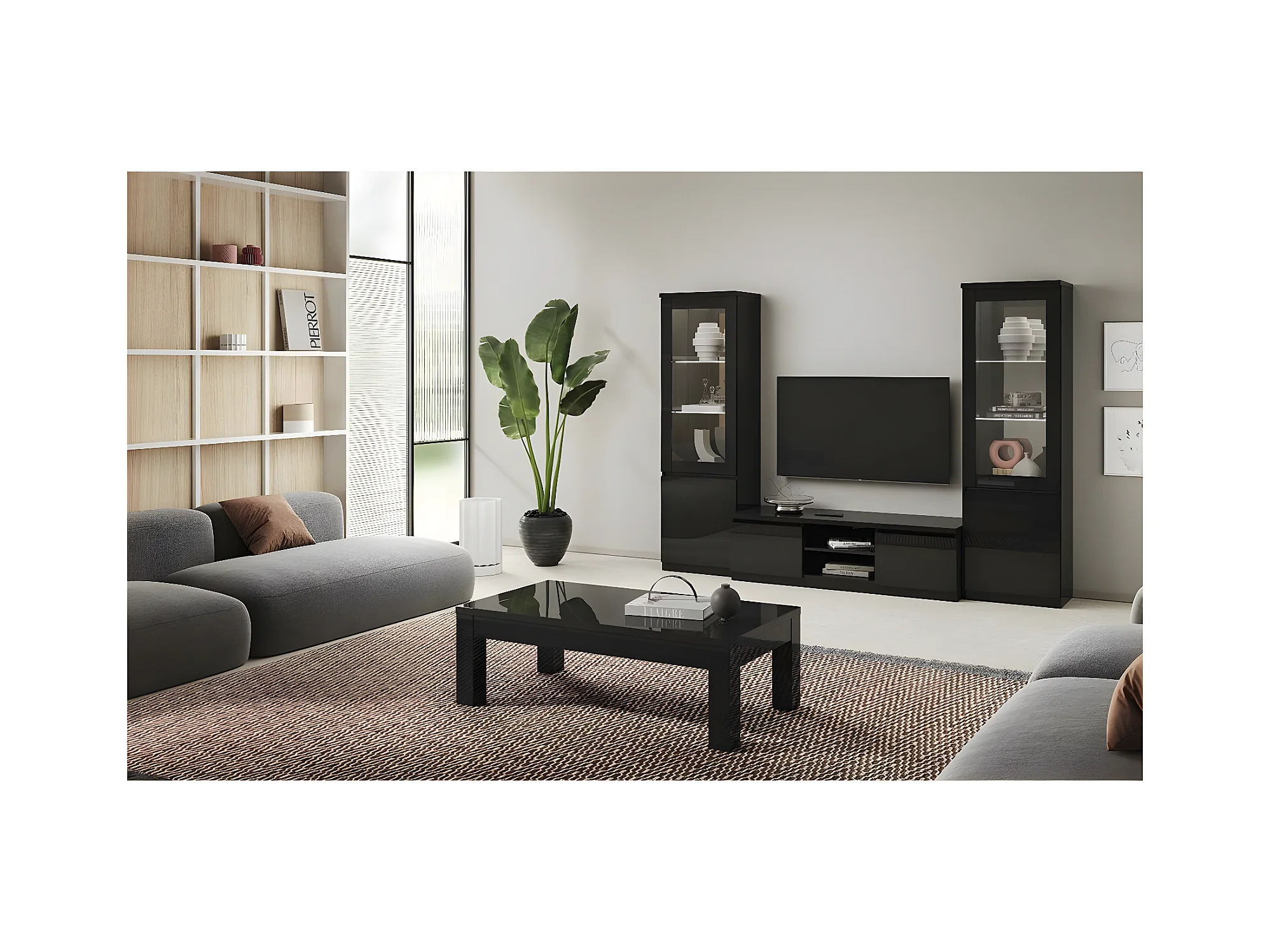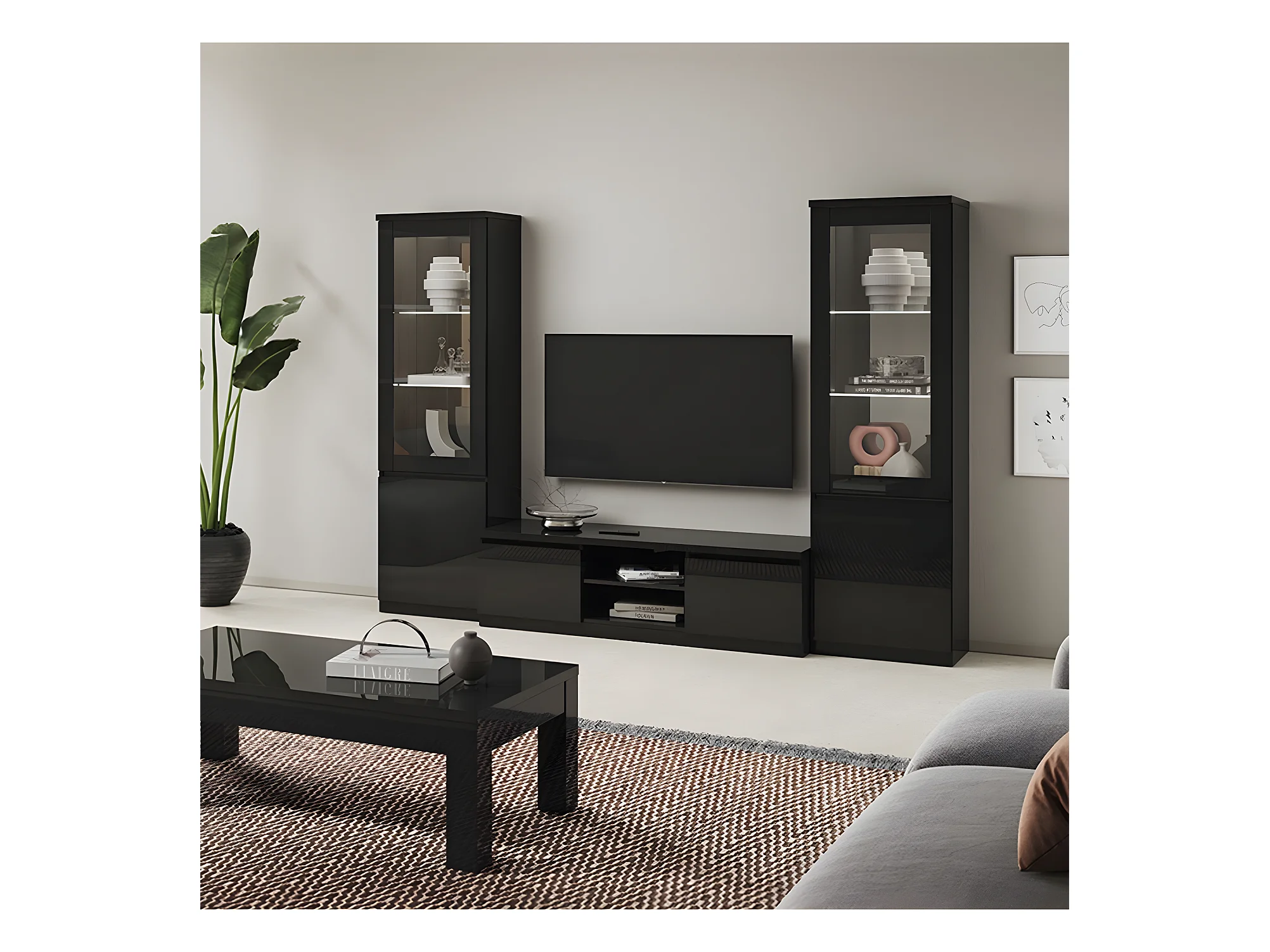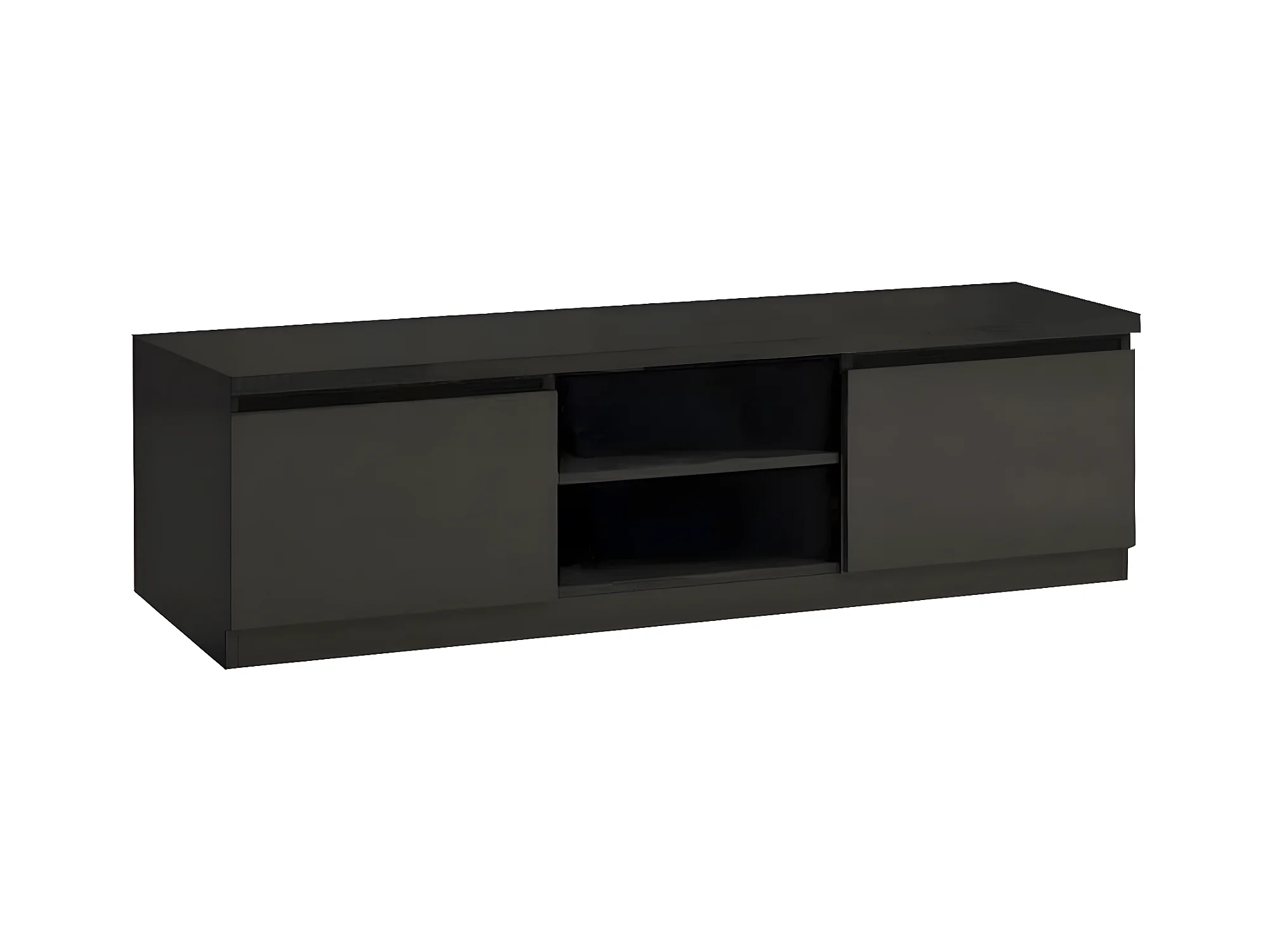 DEYTON - Meuble TV 2 Portes Laqué Noir Brillant