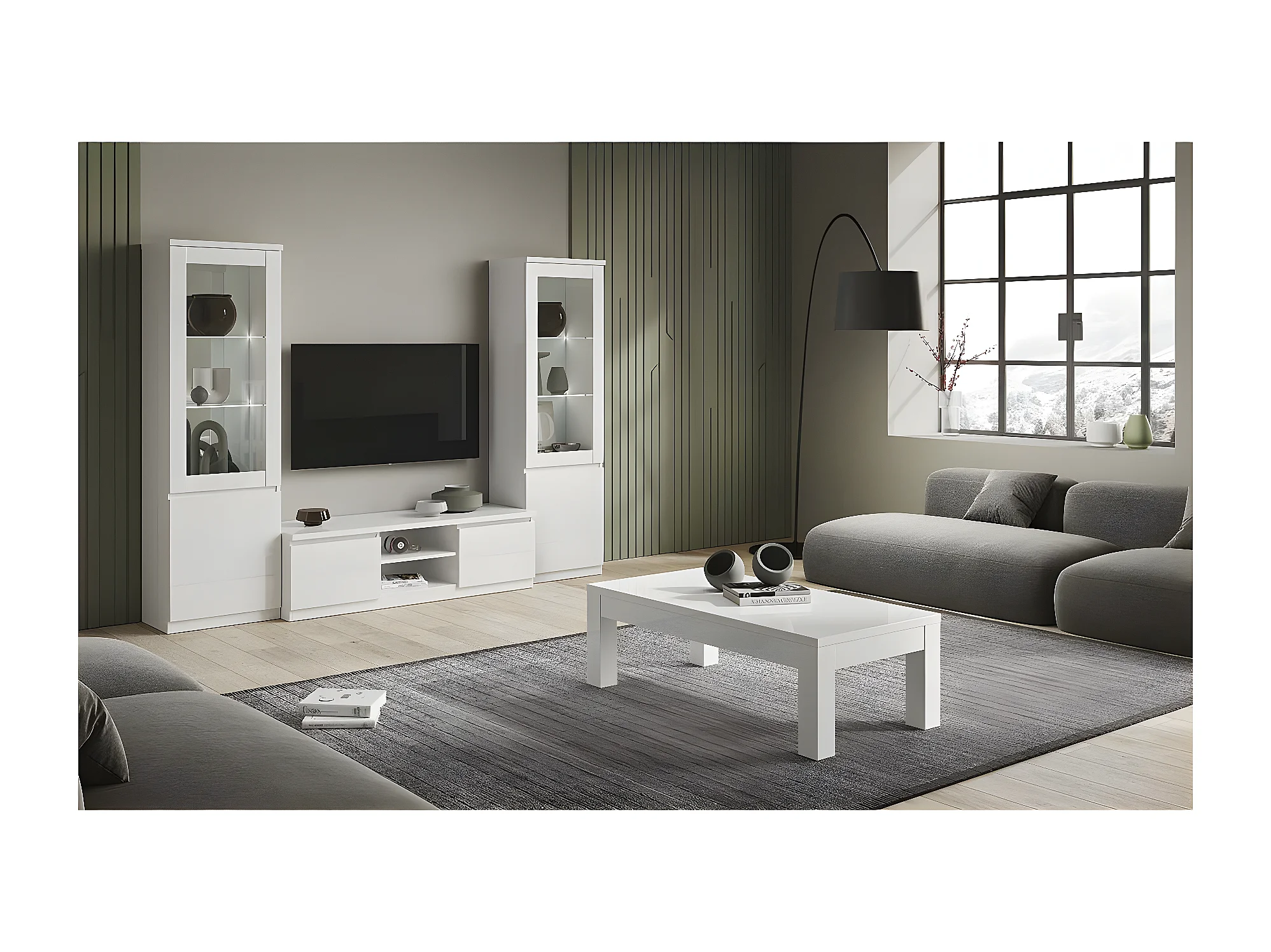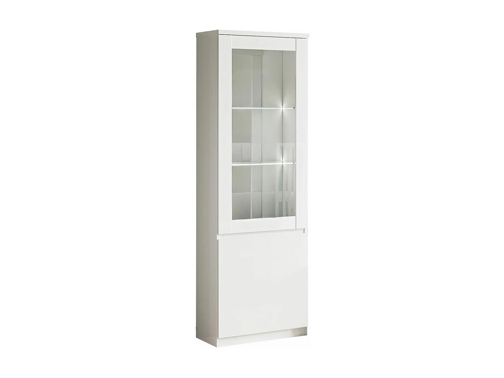 DEYTON - Vitrine Droite Laquée Blanc Brillant avec Leds