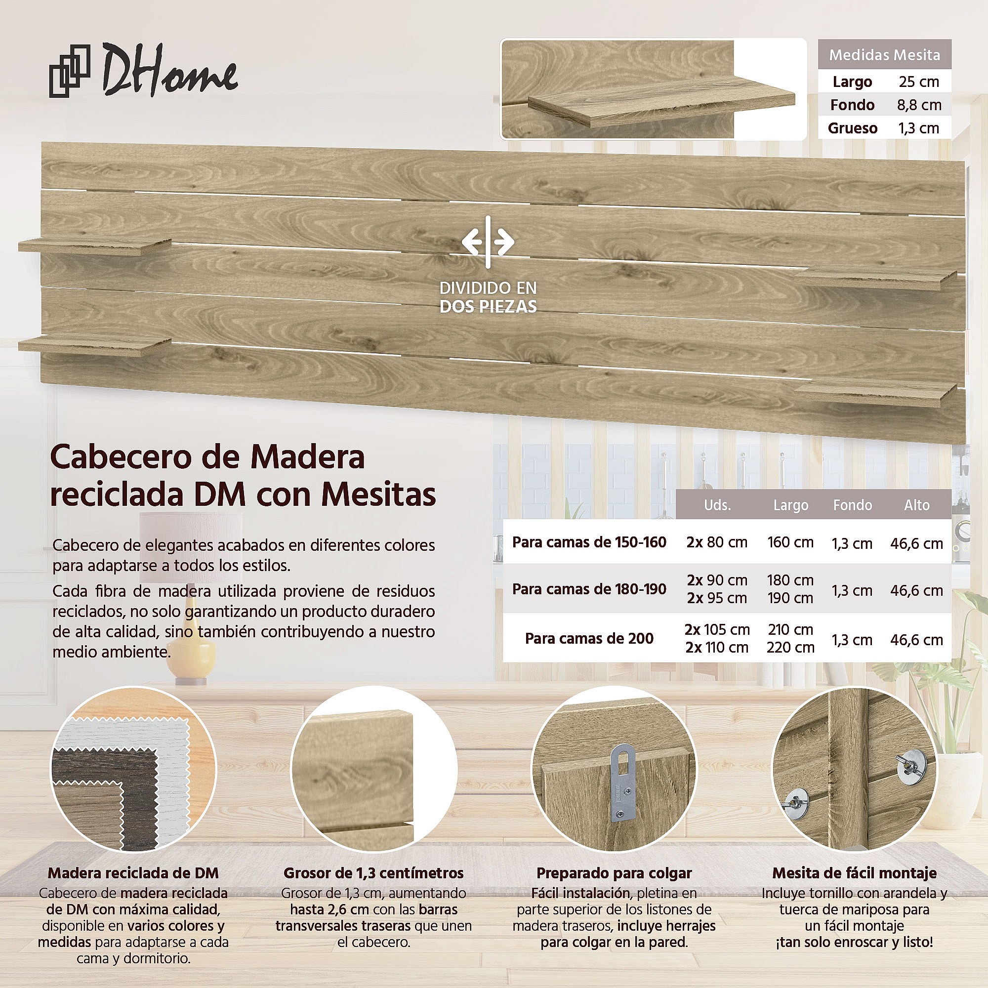 DHOME Tête de lit avec étagères en bois recyclé DM Tenture murale horizontale Style palette Lit nordique vintage (bois cambrien 270 cm)