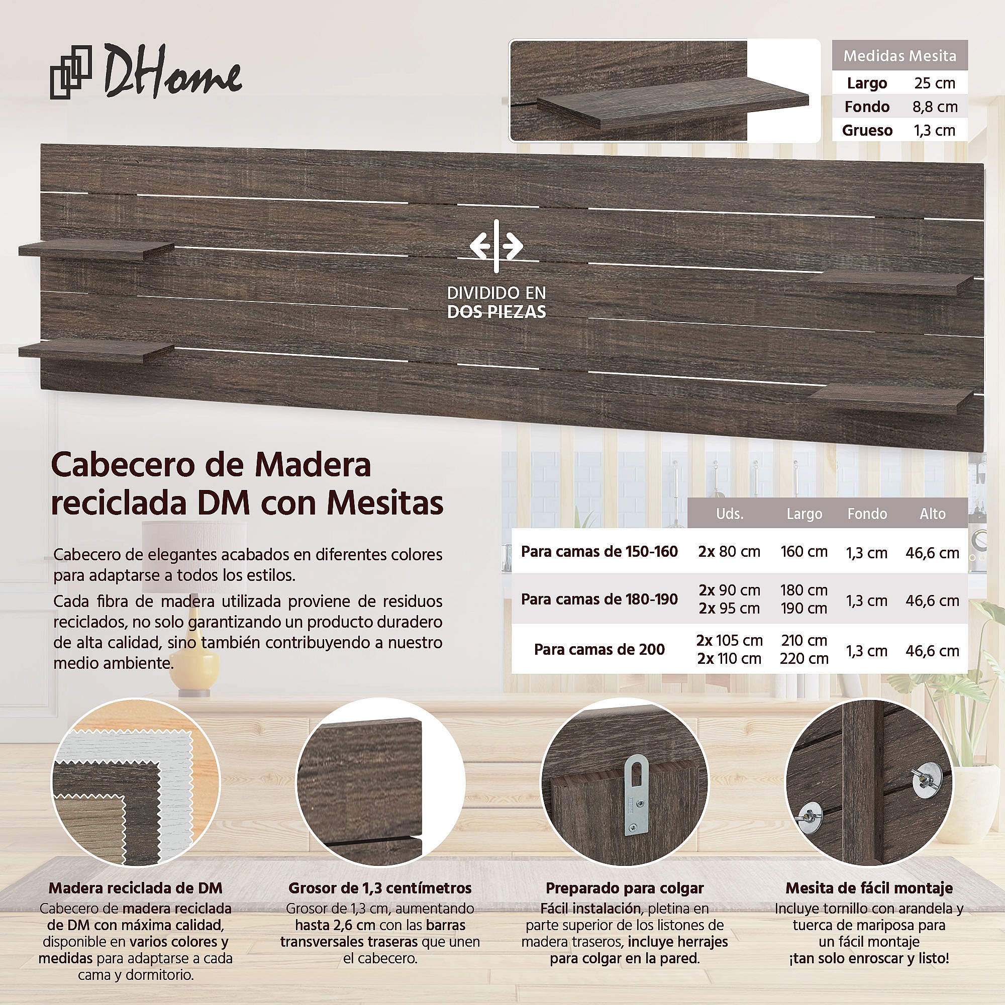 DHOME Tête de lit avec étagères en bois recyclé DM Tenture murale horizontale Style palette Lit nordique vintage (chêne d'Amazone 270 cm)