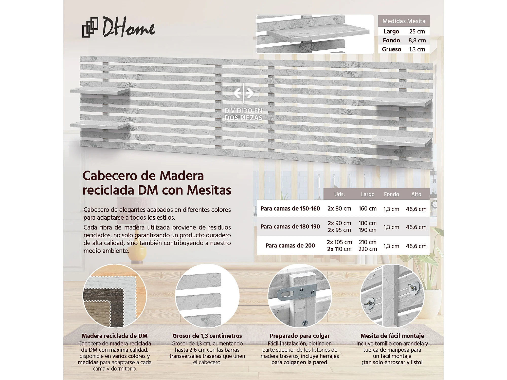 DHOME Tête de lit avec étagères en bois recyclé DM Tenture murale Style palette japonaise Lit nordique vintage (finition marbre 270 cm)