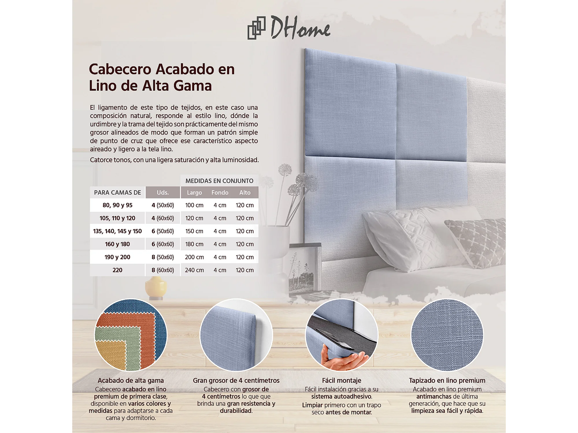 DHOME Tête de lit capitonnée en lin naturel composée de panneaux autocollants interchangeables pour chambre de luxe rembourrée (bleu, 160 cm)