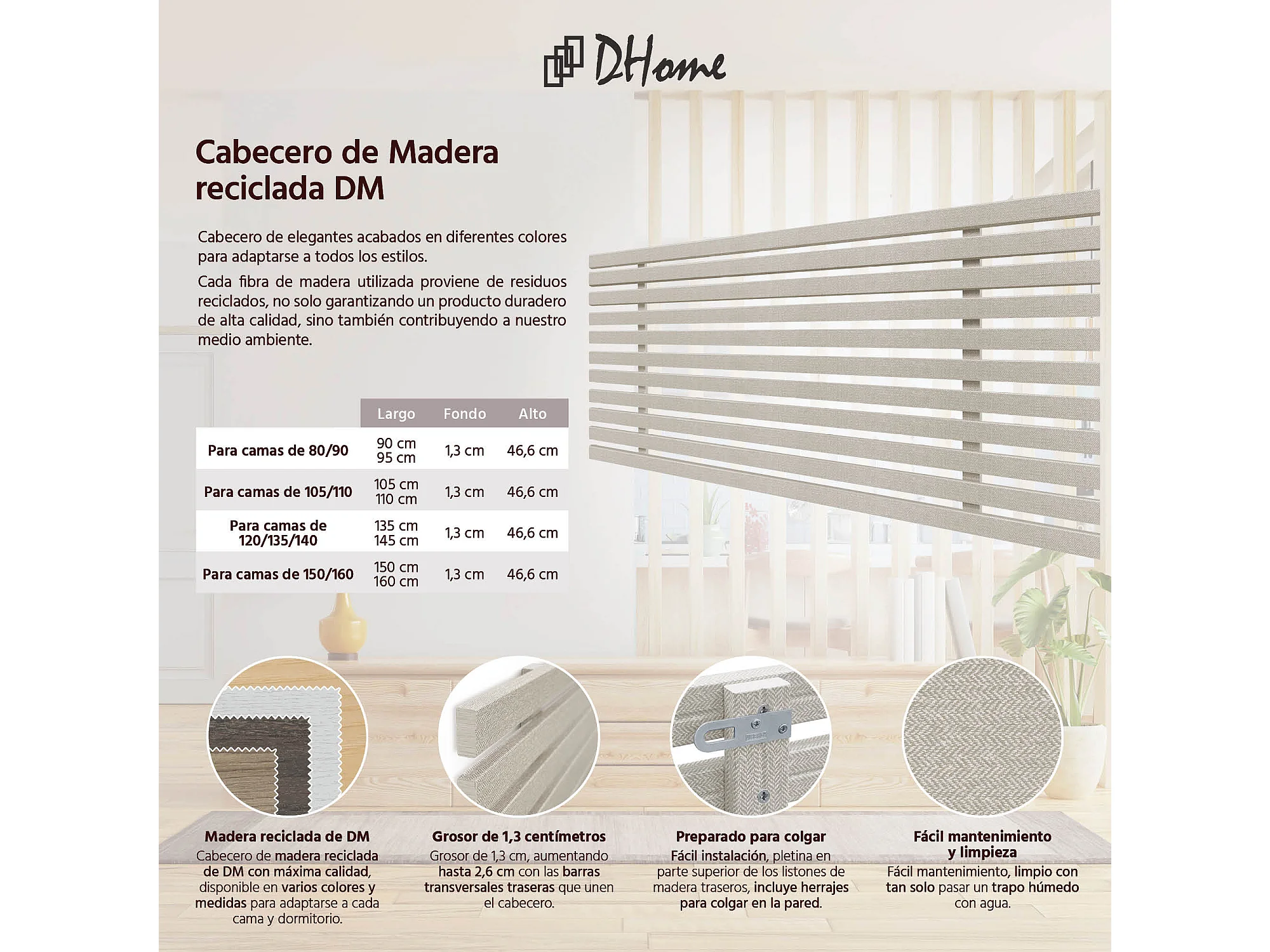 DHOME Tête de Lit en Bois DM Recyclé Double Style Palette Horizontale 160x46cm Lits 160 - Frêne de Bois