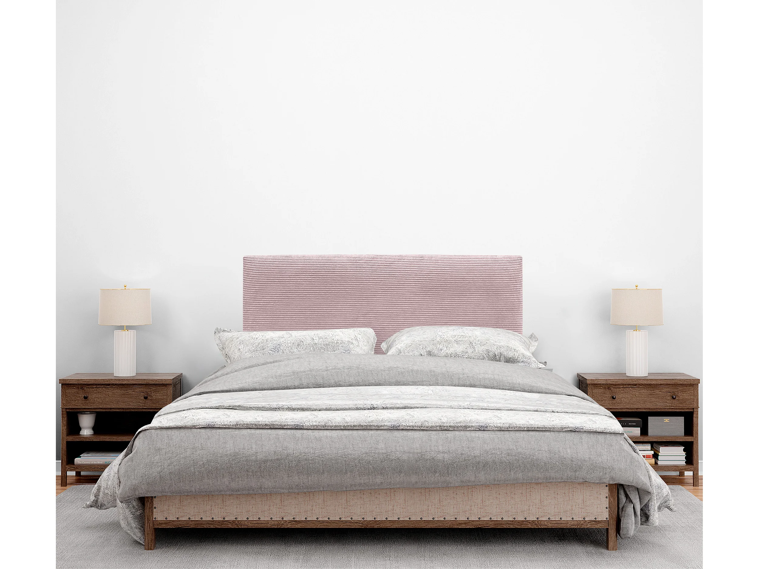 DHOME Tête de Lit Velours Côtelé Uni 80x105 avec Pieds de Lit 80/90 - Rose Pâle