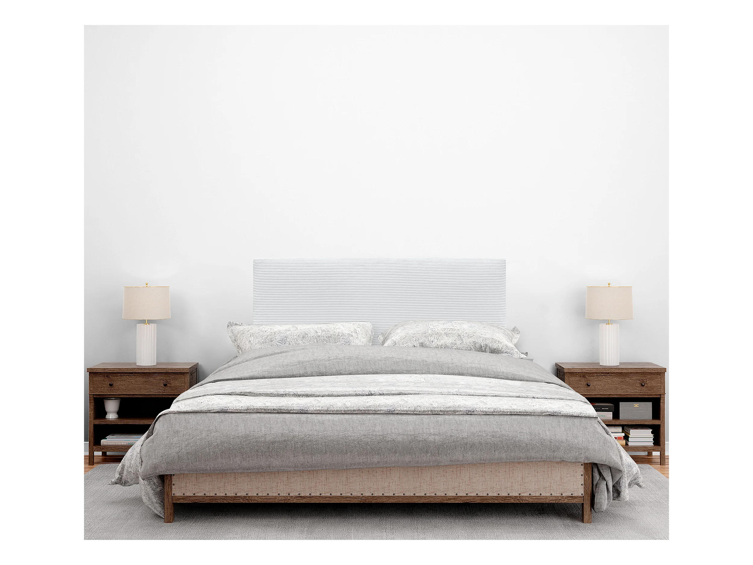 DHOME Tête de Lit Velours Côtelé Uni 145x115 avec Pieds de Lit 120/135/140 - Blanc