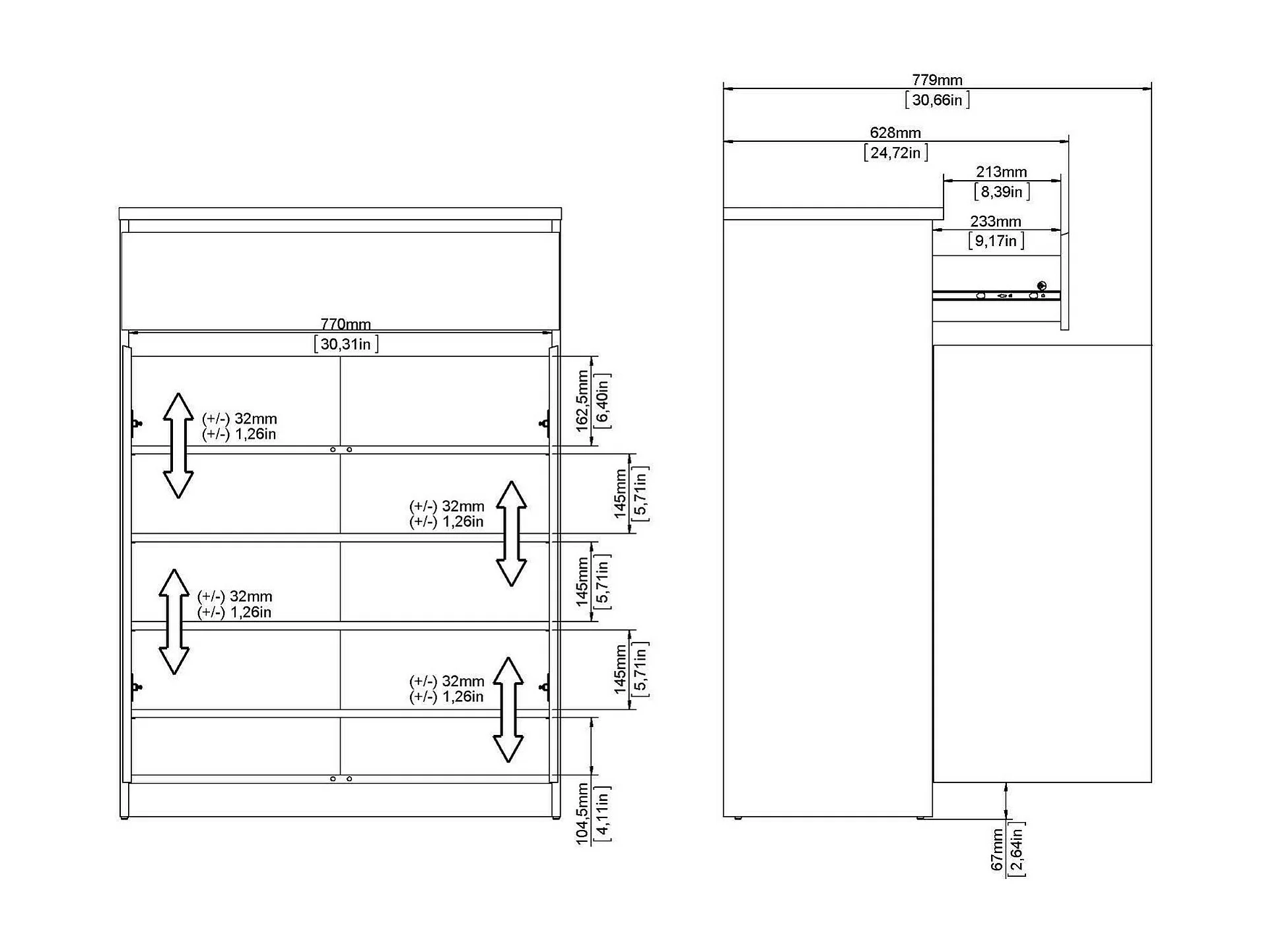 Meuble à chaussures Angilops, un tiroir, 40x80,4x111,3h cm Chêne brun, rangement chaussures