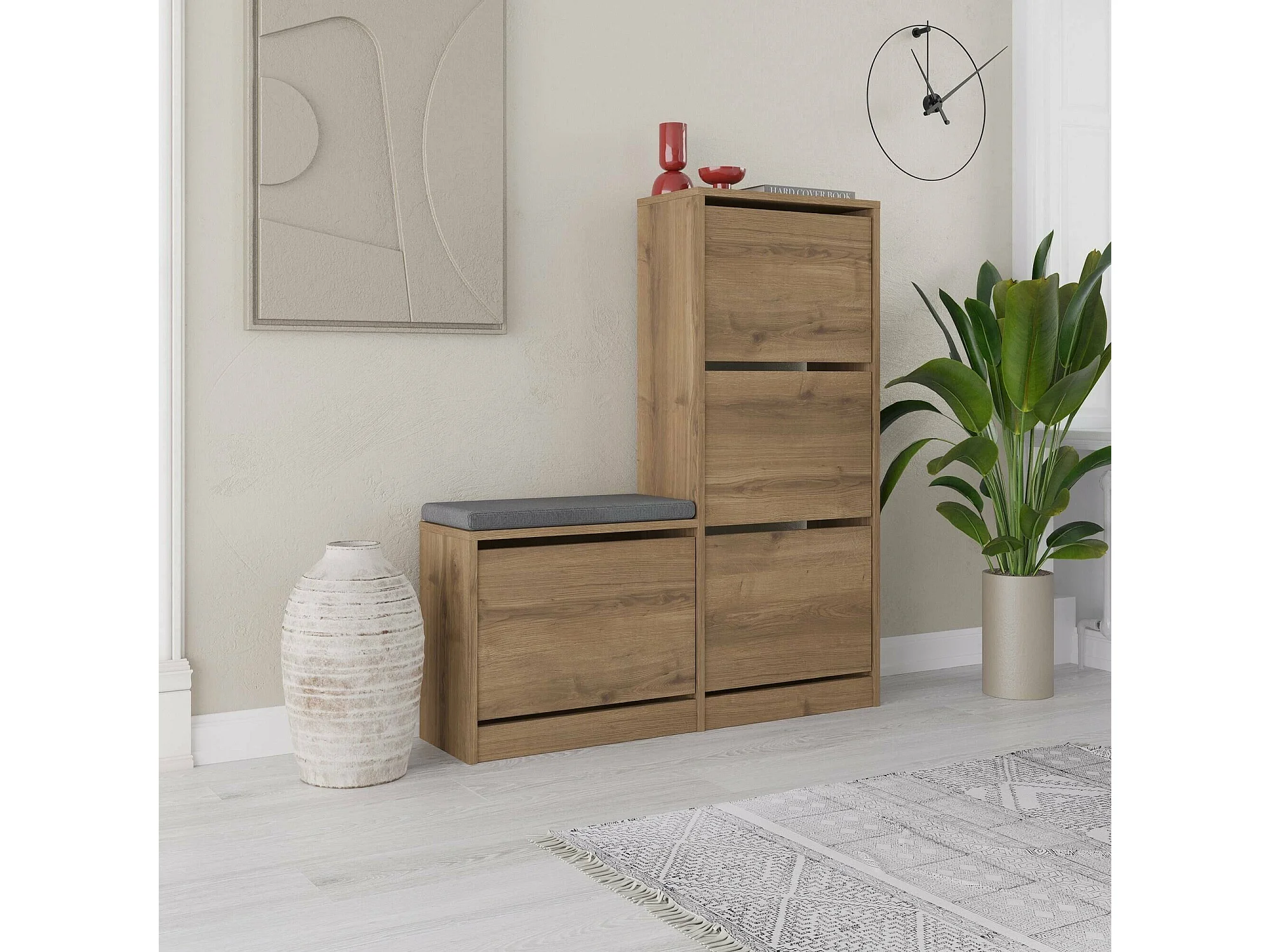 Meuble à Chaussures Velma, 8 Paires, 26x105x119h cm Chêne Brun, Rangement à Chaussures