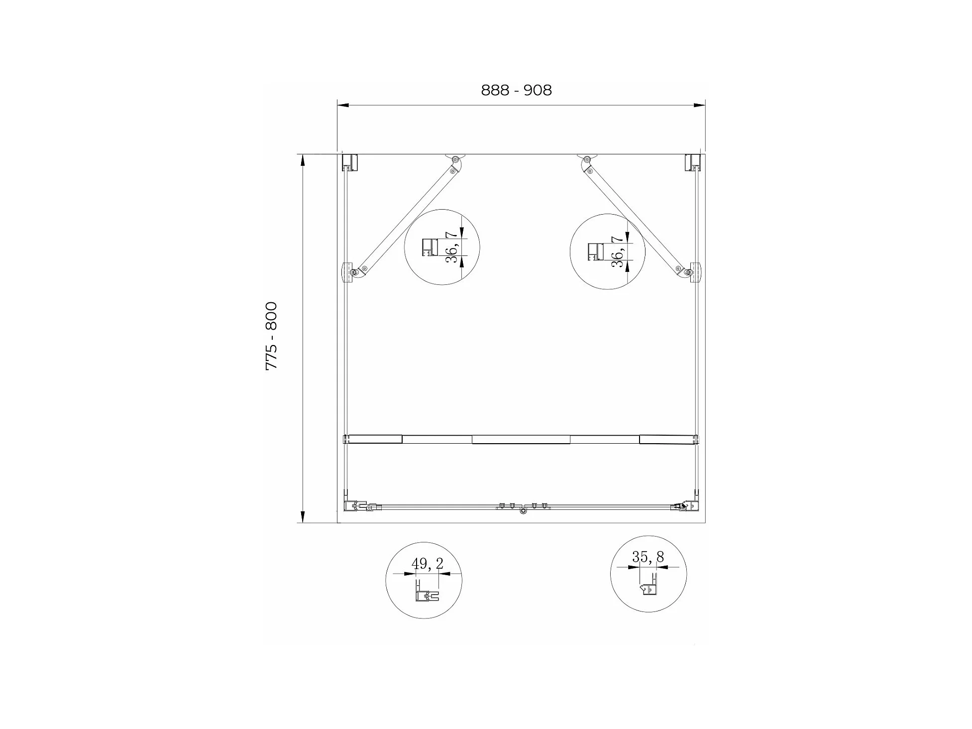 Douche pliante avec ouverture vers l'interieur et deux parois fixes H. 190 - 77,5-80 Fixe – 87,5-90 Porte