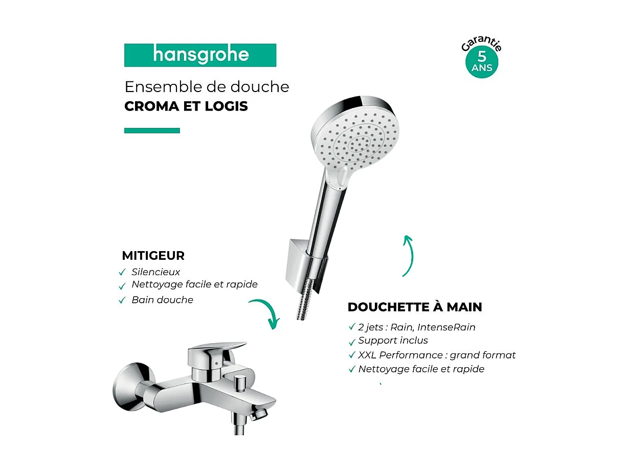Douchette à main HANSGROHE Crometta + Mitigeur bain douche Logis