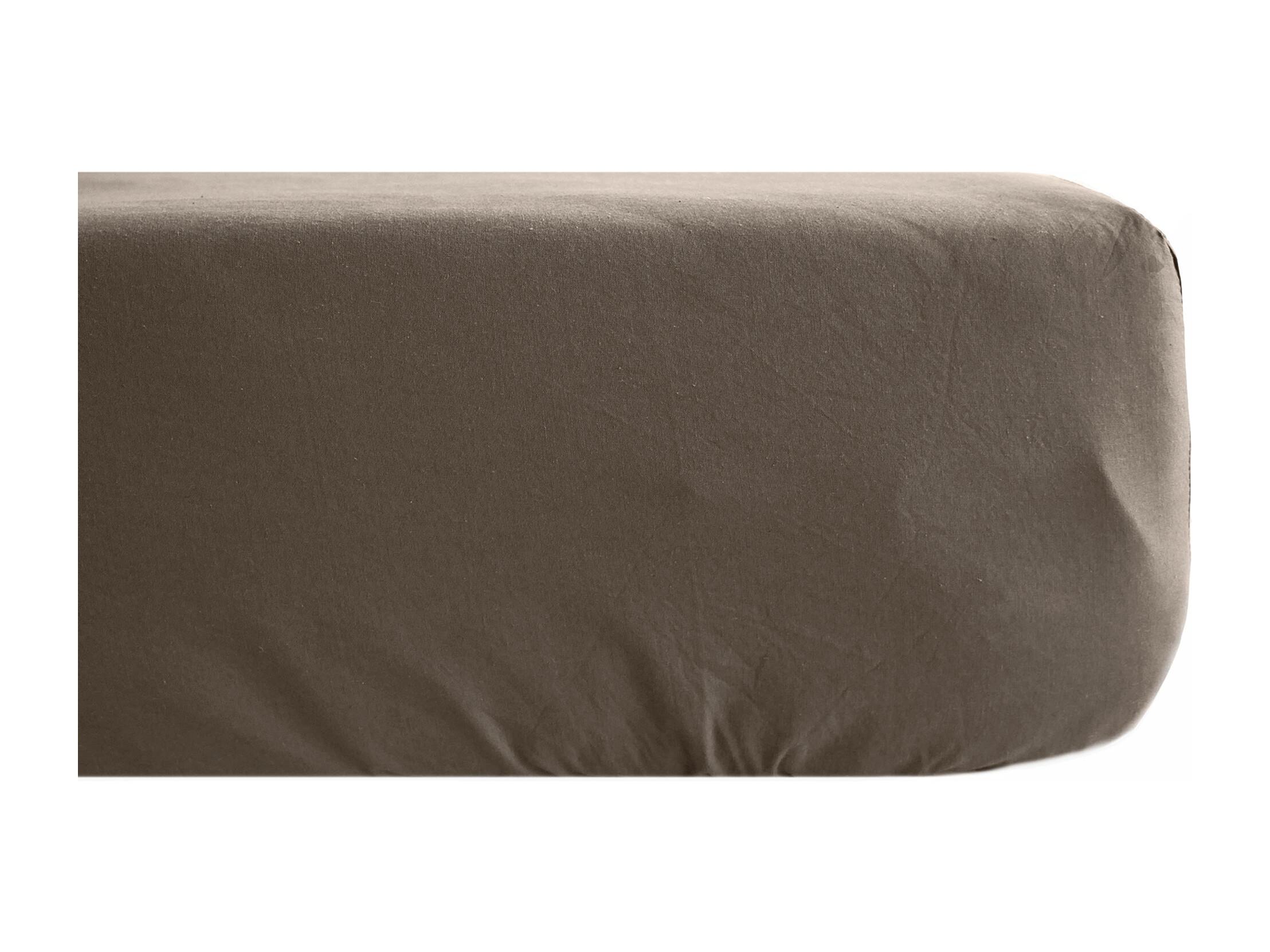 Drap housse 160x200 cm pur coton lavé PALACE marron tabac